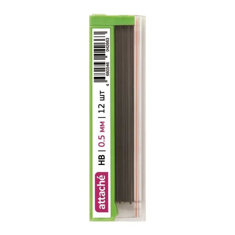Сменный стержень микрографический Attache используется в механических карандашах. Грифели подходят для письма, точного рисования и черчения. В пластиковом футляре 12 грифелей толщиной 0,5 мм. Длина грифеля — 60 мм. Изготовлены из полимерных материалов, обеспечивающих мягкое письмо. Твердость каждого — НВ.