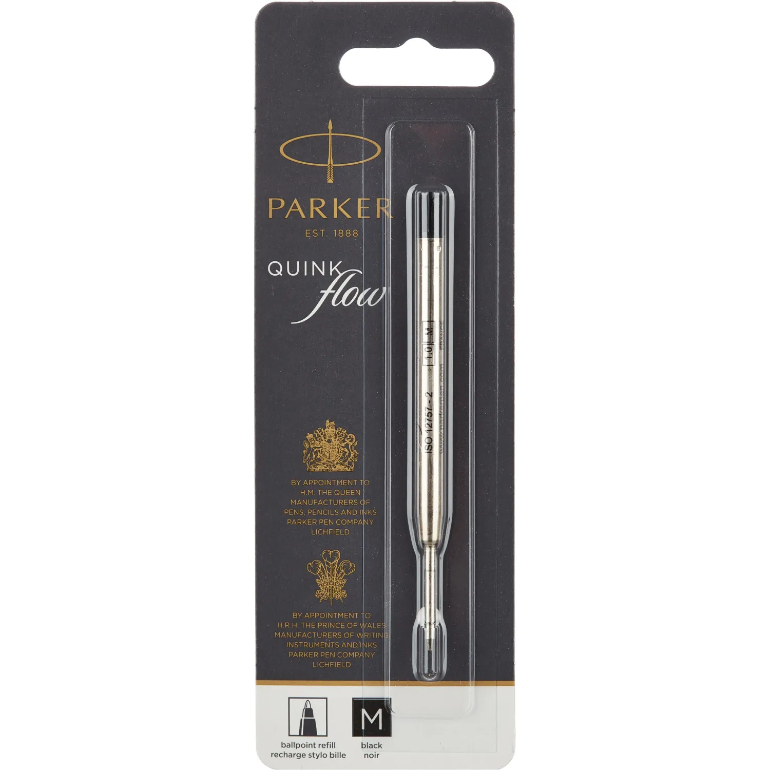 Стержень для шариковых ручек Parker с чернилами черного цвета, толщина линии — 0,8 мм, длина стержня — 98 мм, диаметр шарика — 1 мм. Обеспечивает мягкое письмо, чернила быстро высыхают, устойчивы к свету и влаге. Новое поколение стержней Quink c усовершенствованным пишущим узлом (шариком) и формулой чернил. Более гладкое письмо, быстросохнущая паста, точный контроль расходования чернил.