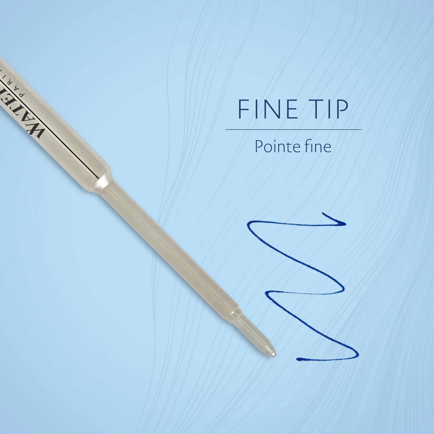 Стержень для шариковых ручек Waterman Standard Maxima, толщина линии — 0.6 мм, длина — 112 мм. Заправлен чернилами синего цвета, которые обеспечивают нанесение тонких и плавных линий. Срок годности стержня составляет 4 года.