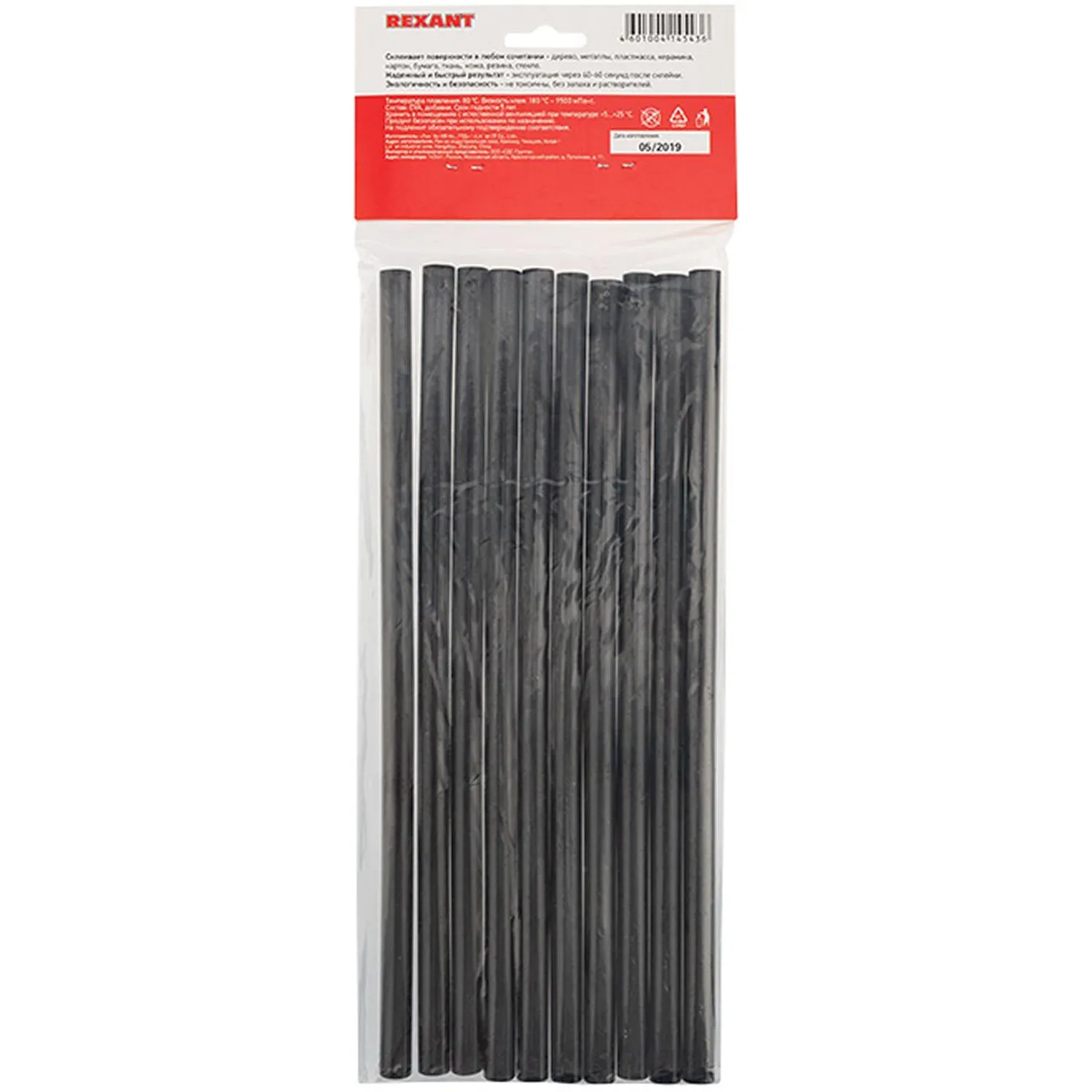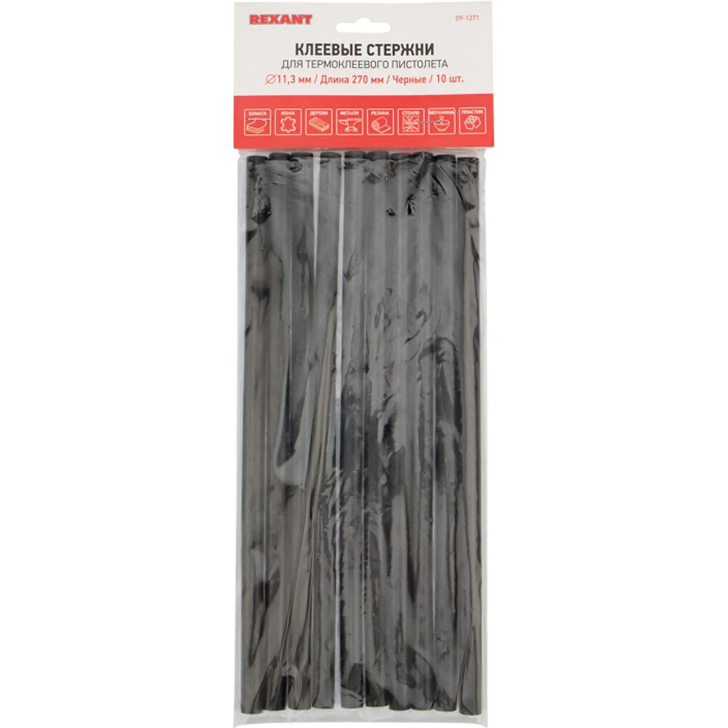 О товаре «Стержни клеевые O11мм, 270мм, черные (10 шт/уп), хедер REXANT»