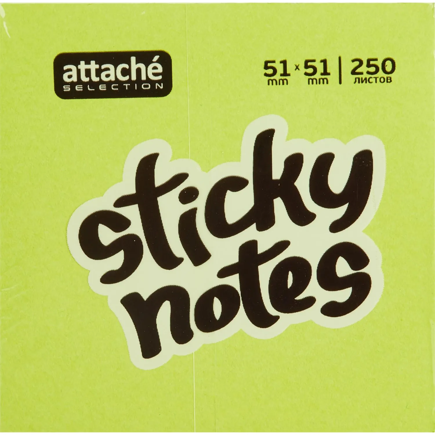 Стикеры Attache Selection Фреш в формате 51×51 мм, состоят из 250 листов упакованных в пленку. Бумага для заметок размером: 51×51 мм, 4 неоновых и пастельных цвета (неоновый зеленый, неоновый желтый, неоновый розовый, белый). Плотность бумаги: 75 г/кв.м. Клейкий слой — 22