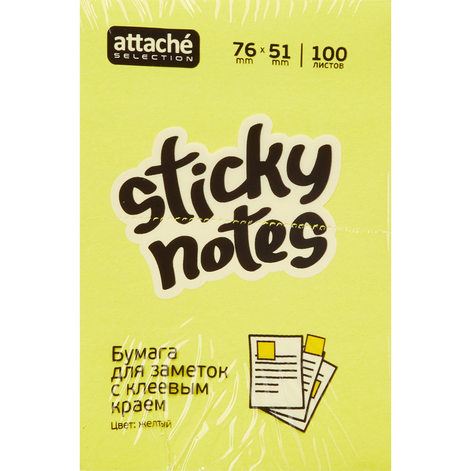 Стикеры Attache Selection 76x51 мм неоновые желтые (1 блок на 100 листов)