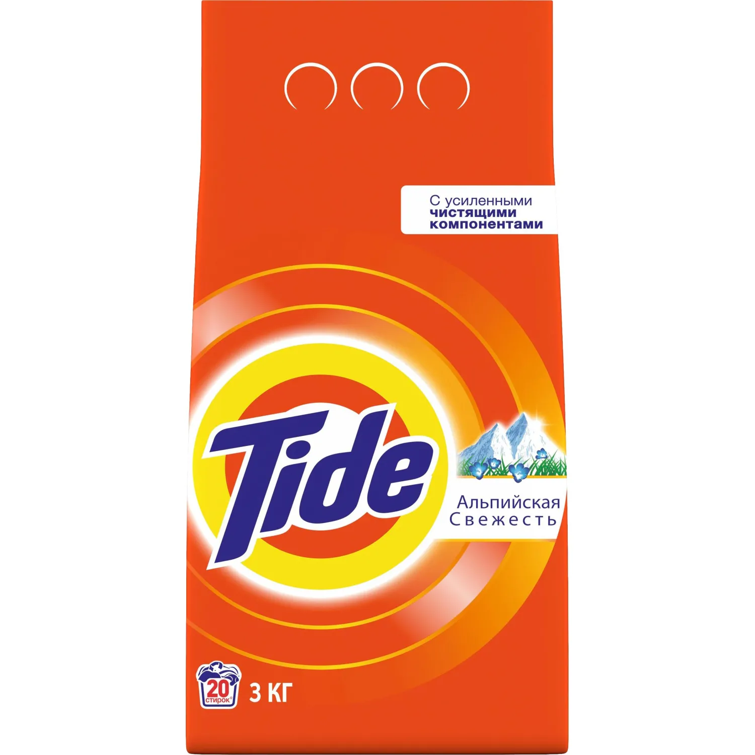 Стиральный порошок Tide Альпийская свежесть отлично отстирывает одежду. Это не только высокоэффективное, но и экономически выгодное средство, ведь одна доза Tide позволяет добиться большей белизны, чем две дозы обычного средства для стирки.Придает вещам дополнительную мягкость и свежесть.
