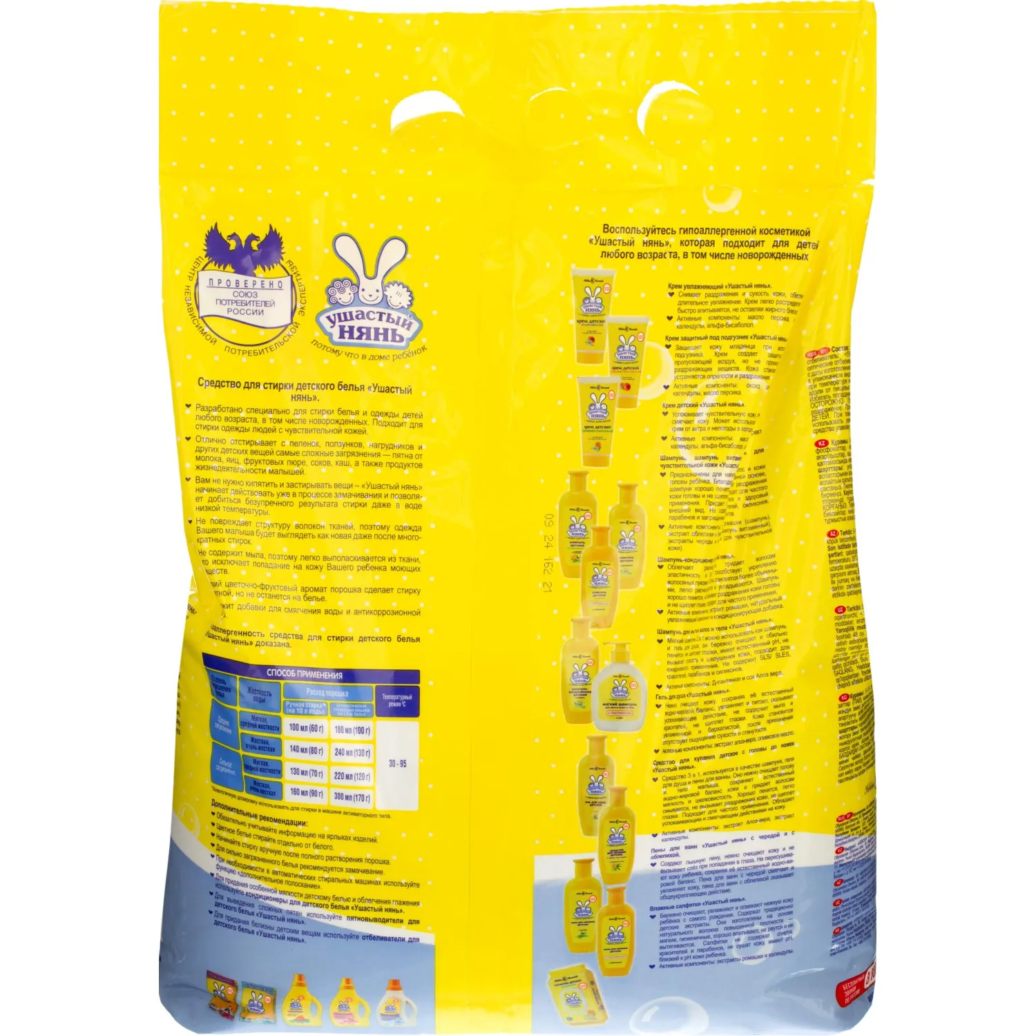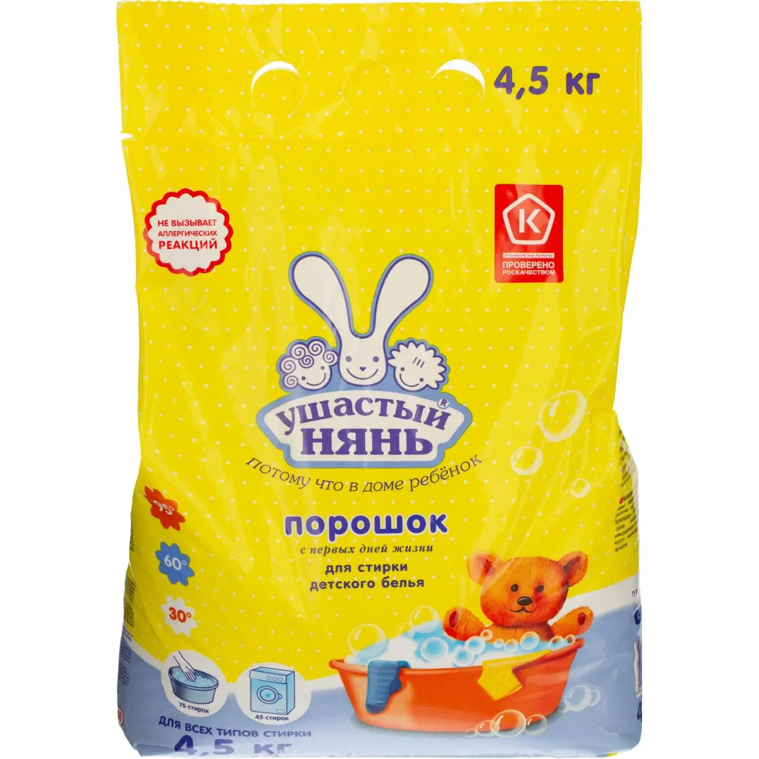О товаре «Порошок стиральный автомат для детского белья Ушастый Нянь 4.5 кг для белого и цветного белья»