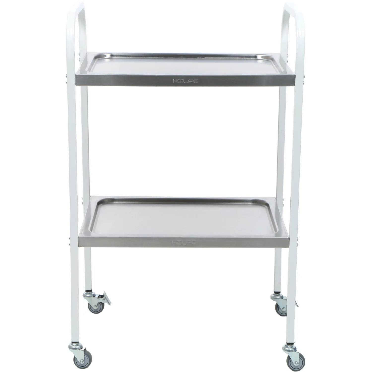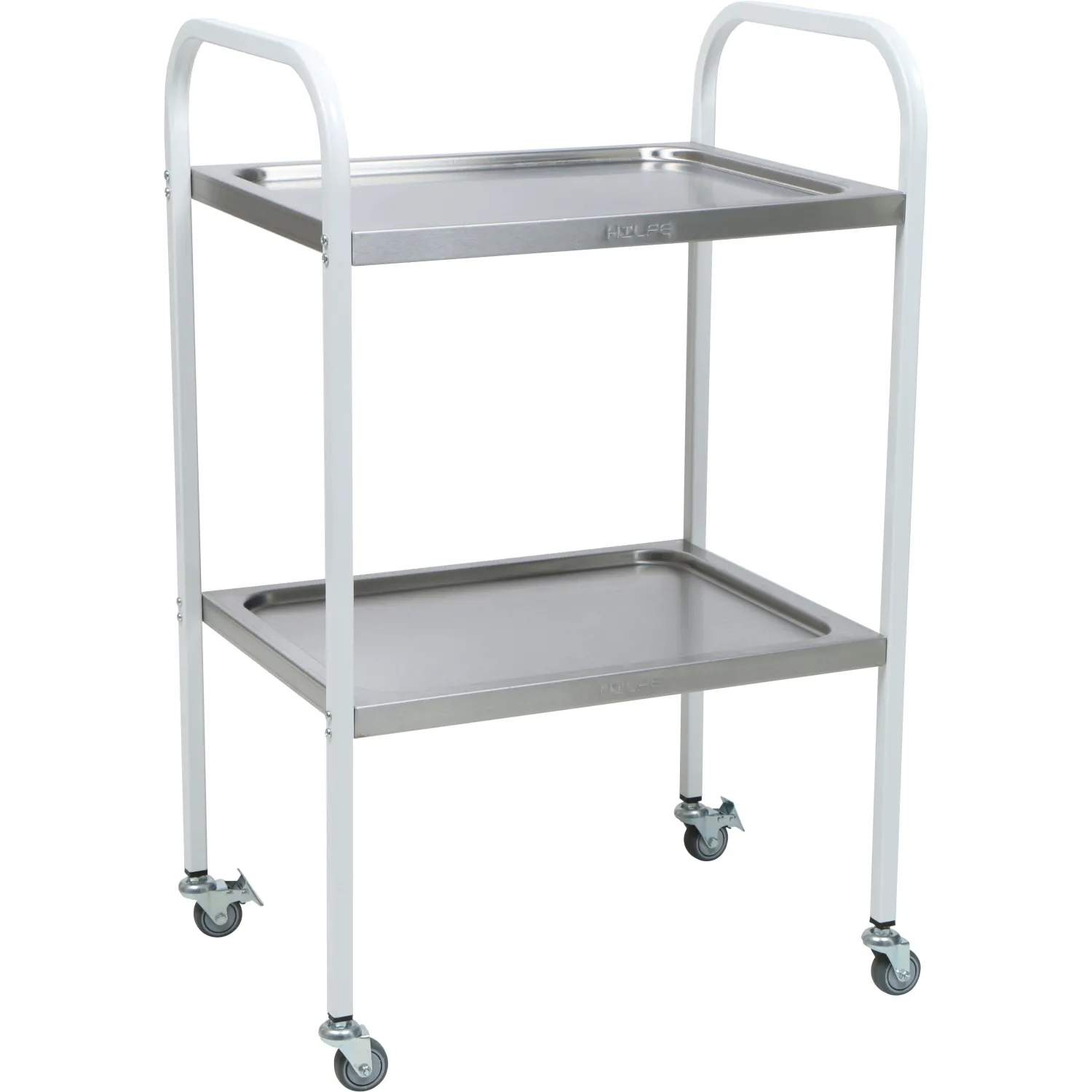 Стол процедурный медицинский предназначен для размещения инструмента, медикаментов и приборов. Каркас изготовлен из профильной трубы квадратного сечения 20×20×1.5 мм, покрытой эпоксидно-порошковой краской. Полка изготовлена из нержавеющей стали толщиной 0.8 мм. Поверхность столика устойчива к ударам, сколам, средствам дезинфекционной обработки, способом протирания. Столик имеет 4 колеса пластиковых диаметром 50 мм, два из которых снабжены тормозом. Нагрузка на металлическую полку — не более 10 кг.