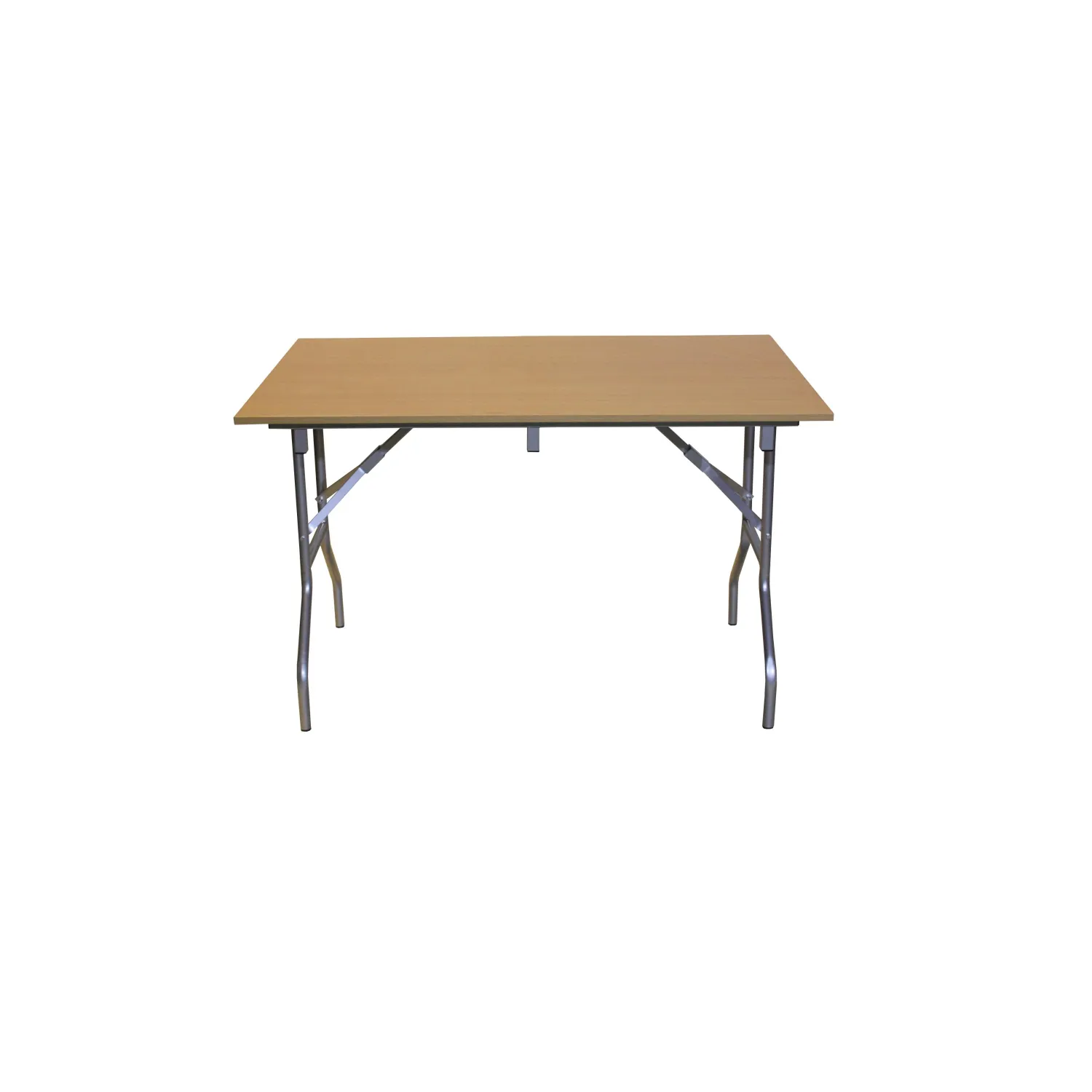 Прямоугольный обеденный стол Ривьера имеет складную конструкцию, что облегчает его транспортировку и хранение. Состоит из металлического каркаса и столешницы из ЛДСП (цвет — бук) прикрепленной к каркасу через кронштейны при помощи шурупов. Столешница, изготовлена из плиты ЛДСП, толщиной 16 мм и облицована по периметру кромкой ПВХ, толщиной 2 мм. В сложенном состоянии стол устойчиво стоит на ножках и столешница не опирается кромкой на землю. Это предохраняет глянцевую поверхность кромки от повреждений. Данная конструкция позволяет быстро раскладывать, убирать и удобно хранить столы. Равномерно распределенная нагрузка — 300 кг.