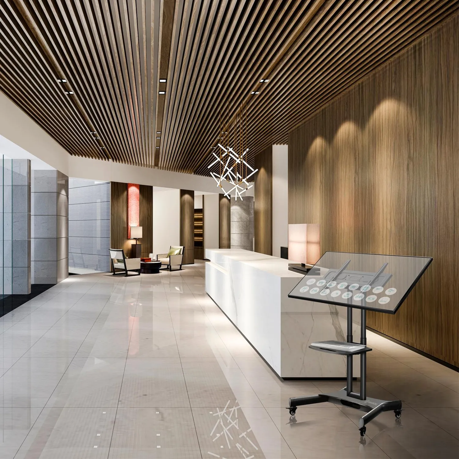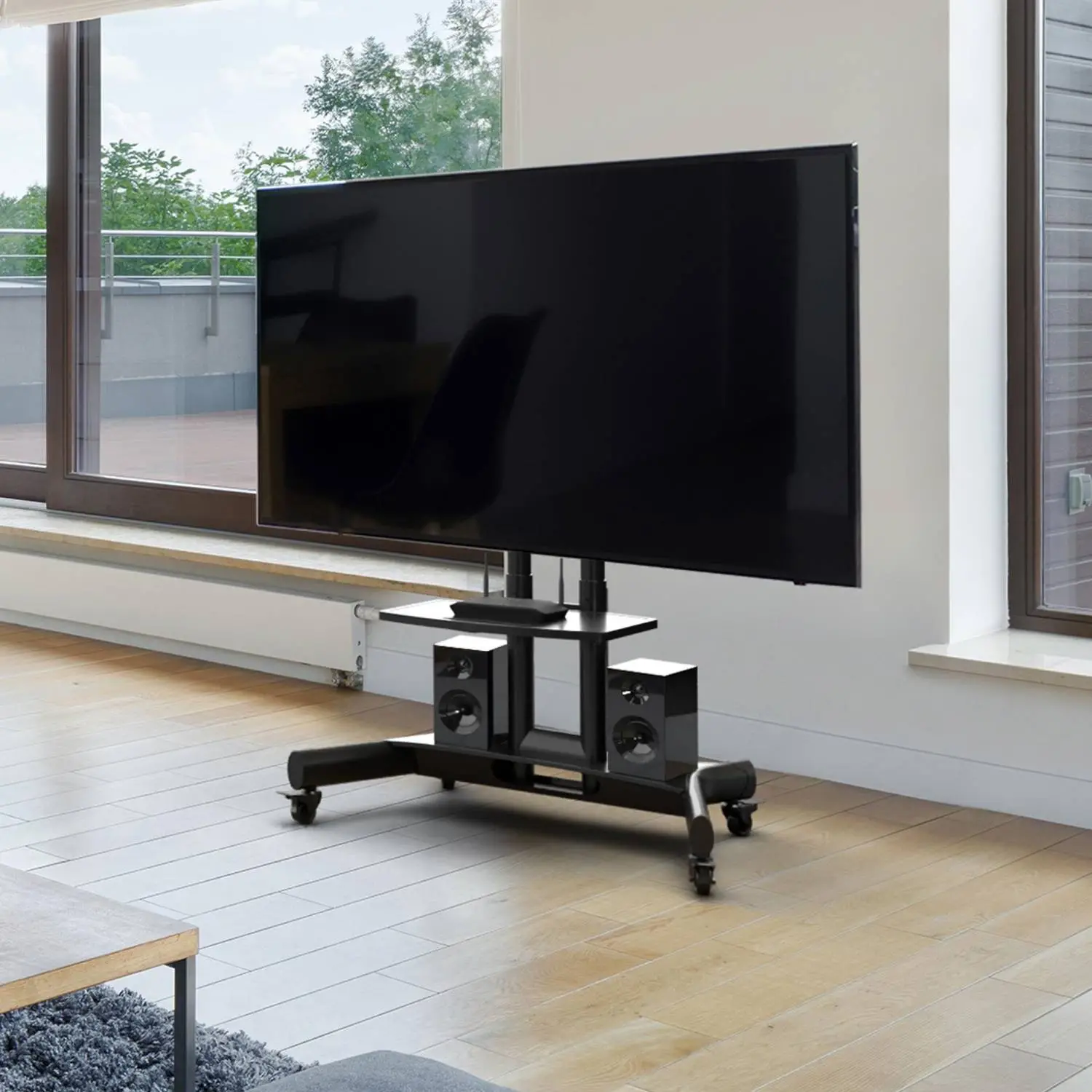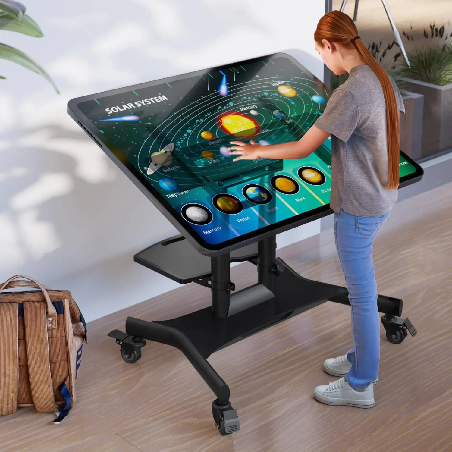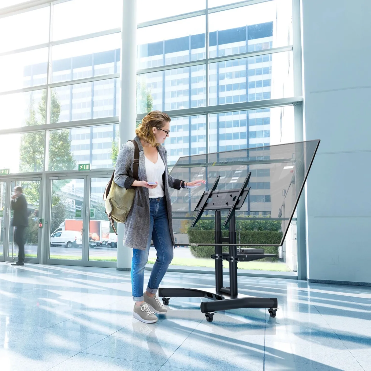 Onkron TS1350 — мобильная стойка с обратно-наклонным кронштейном с функцией обратного наклона до 90° держит телевизоры и интерактивные панели диагональю от 32 до 70 дюймов и весом до 45 килограммов. Вы сможете переместить стойку в любое удобное место и выбрать оптимальное положение при просмотре. Уникальная особенность TS1350 в возможности обратного наклона монитора до 90 градусов. Поэтому стойка TS1350 идеально подходит для панелей, использующих сенсорные навигационные прошивки, профессиональную Microsoft Surface Hub и ее аналоги. TS1350 — незаменимая вещь для офиса, частного музея, выставок и презентаций или как центральный компонент домашнего кинозала. Она составит конкуренцию большинству подвесных кронштейнов. Элегантный вид стойки позволяет вписать ее не только в любое общественное пространство, но и в интерьер просторной гостиной. Прочная и устойчивая стальная мобильная стойка, оснащена механизмом блокировки колес от несанкционированного движения. На стоечной полке можно дополнительно разместить аппаратуру или раздаточный материал (флаеры, буклеты, журналы).