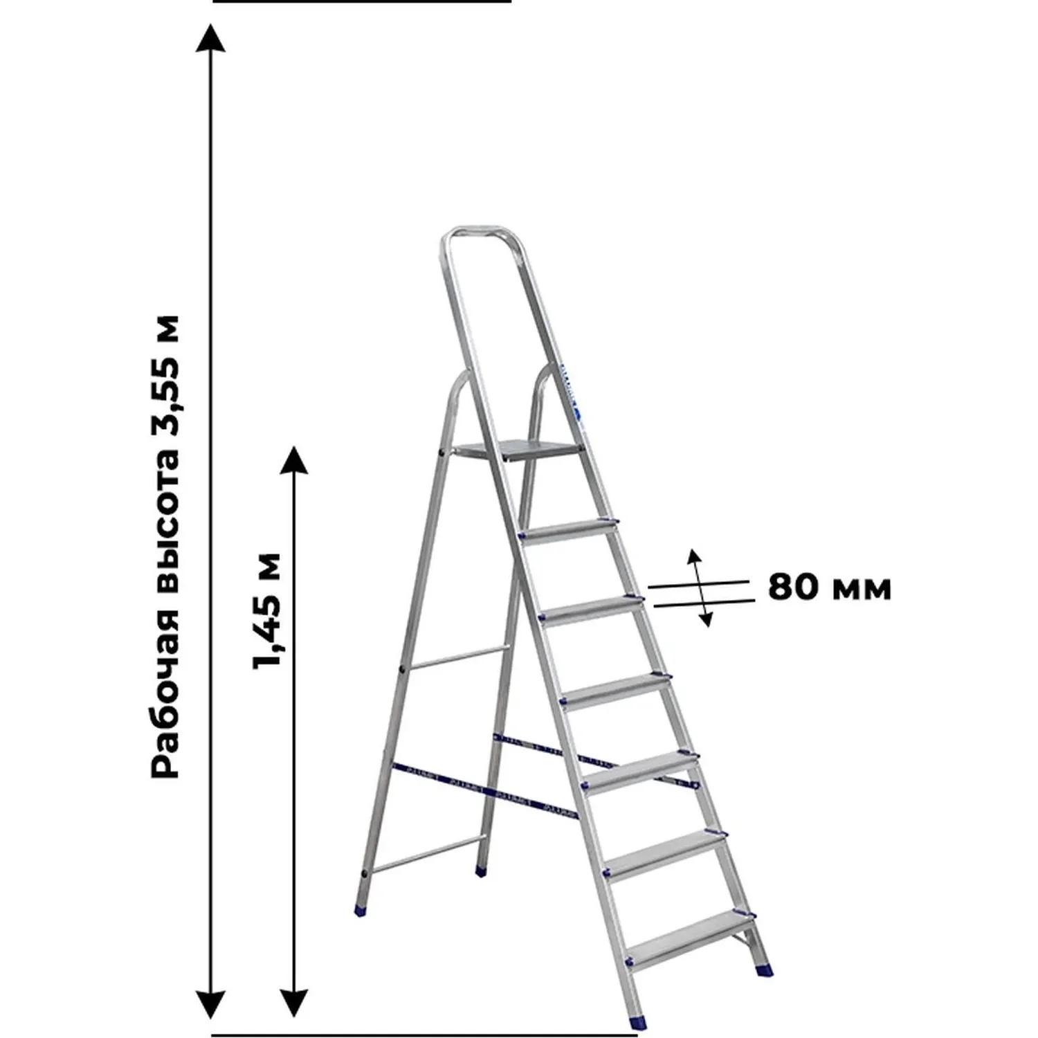 Стремянка рассчитана на эксплуатацию внутри и снаружи помещений и способна выдерживать нагрузку до 150 кг.