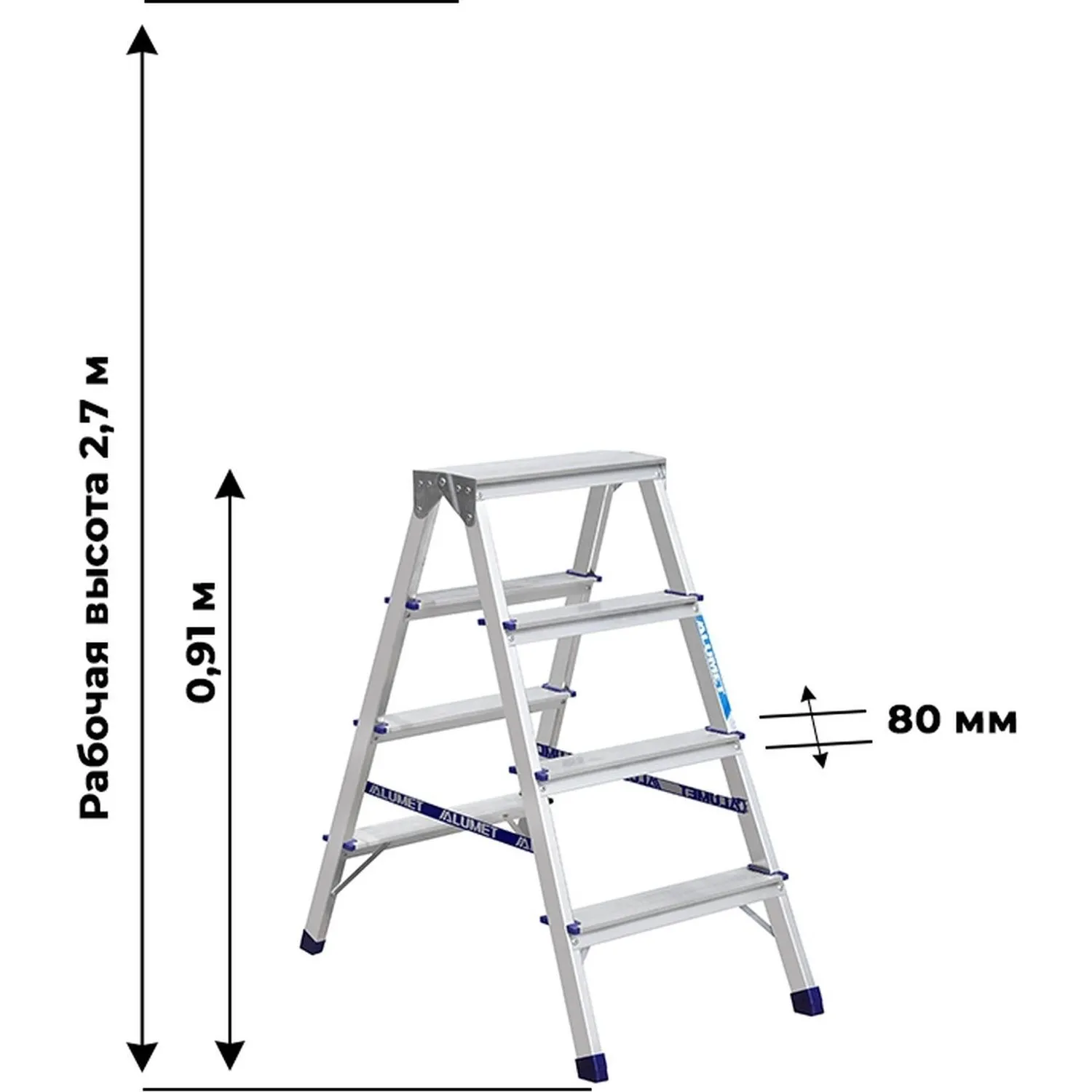 Стремянка алюминиевая 2x4 ступени Алюмет AD7204