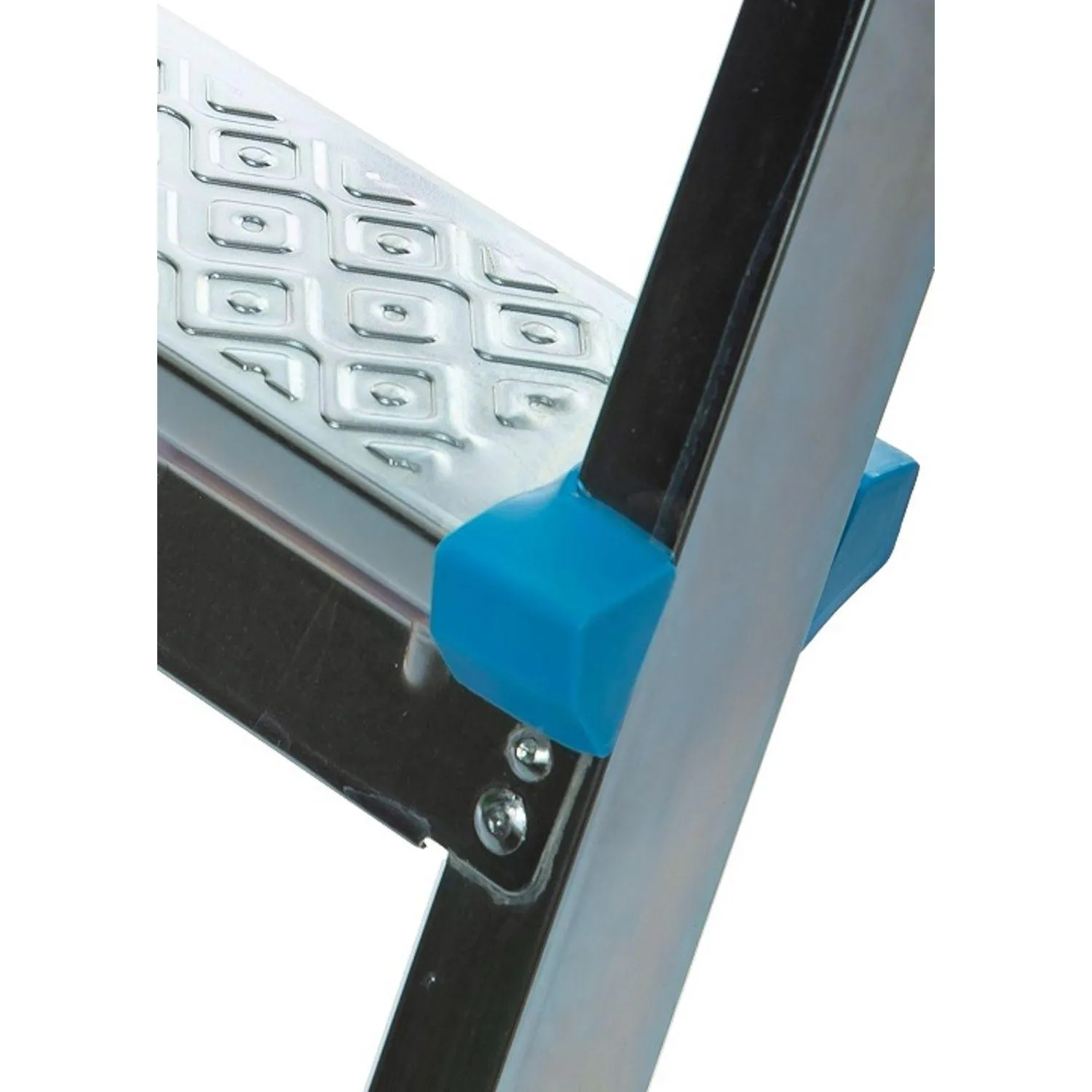 Стремянка предназначена для бытовых, ремонтных и отделочных работ. Стальная платформа 25 см и ступени 7,5 см с рифлёной противоскользящей поверхностью. Усиленное 4-точечное крепление ступеней к профилю стремянки. Пластиковые насадки на ножках обеспечивают стабильность и безопасность.