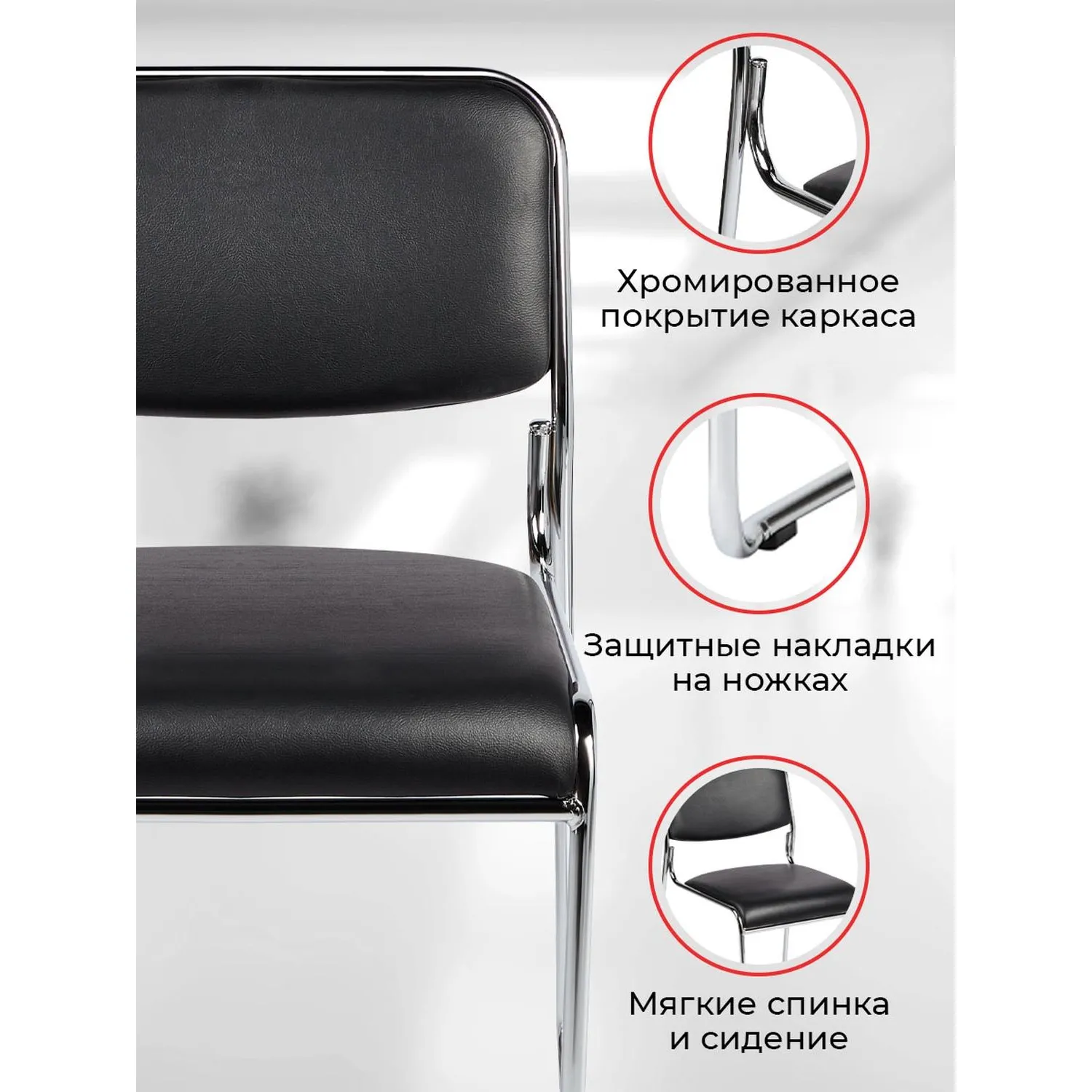 Стул офисный Easy Chair 802VP с сиденьем и спинкой, обито искусственной кожи черного цвета. Каркас изготовлен из хромированного металла.