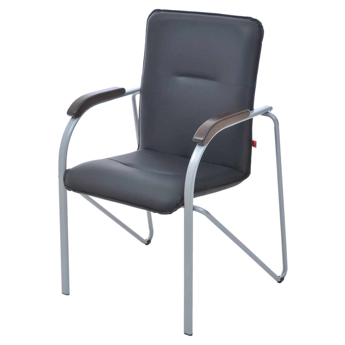 Универсальность модели в её безупречной сочетаемости с самыми различными интерьерными решениями. Мягкое основание стула на прочном металлическом каркасе обеспечивает комфорт ожидания посетителям и сотрудникам. Деревянные накладки классического цвета "орех" добавляют особого лоска офисному стулу.