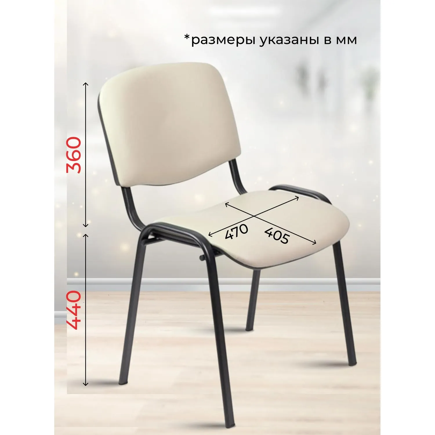 Стул офисный Изо на металлическом каркасе, покрытом износостойкой краской черного цвета. Обивка выполнена из высококачественной искусственной кожи Z21. Задняя часть спинки из пластика черного цвета.