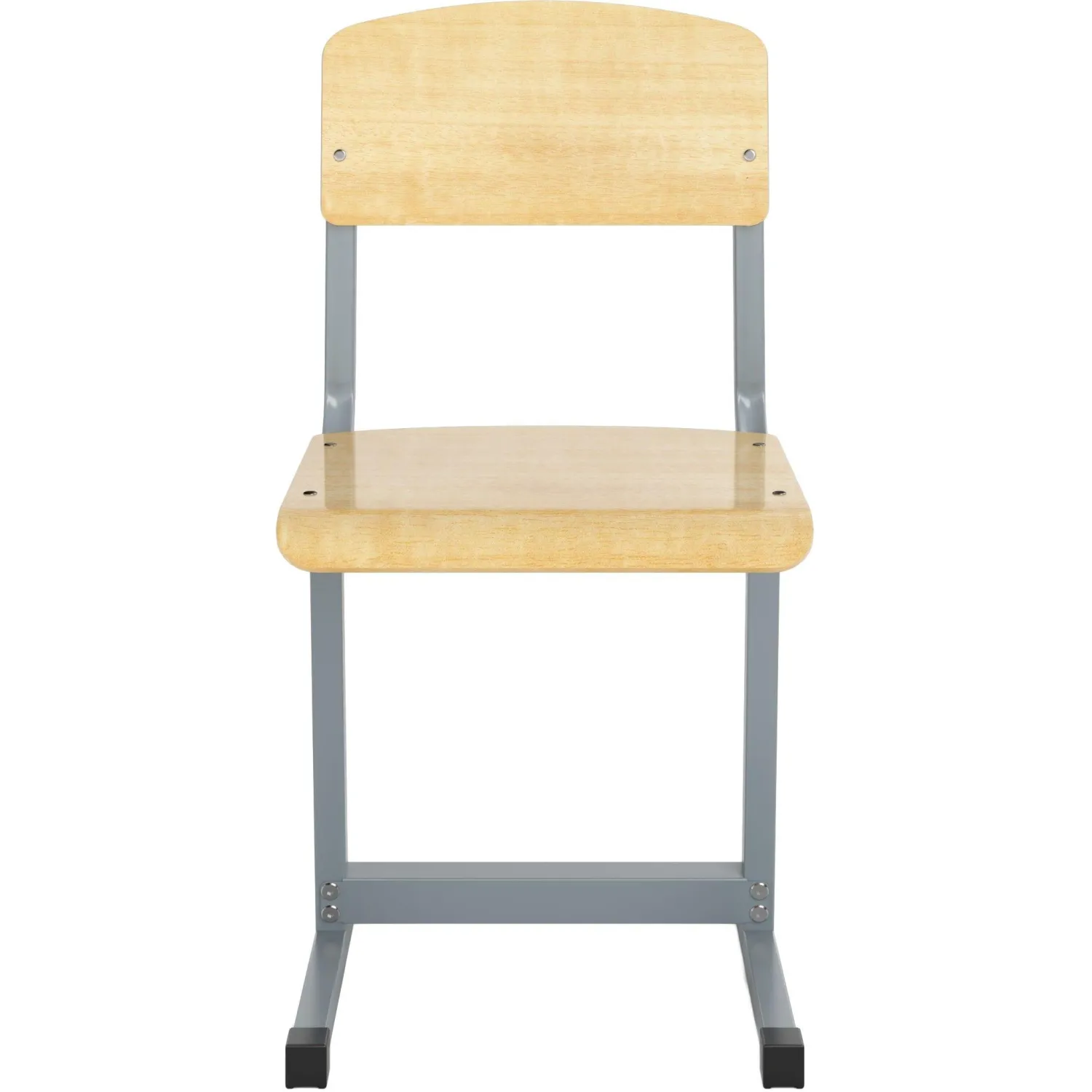 Стул. Сиденье и спинка стула изготовлены из гнутоклееной фанеры толщиной не менее 8 мм, покрыты бесцветным лаком. Крепление сиденья и спинки к каркасу стула осуществляется при помощи мебельных болтов и гаек. Металлический каркас стула разборный — состоит из трех элементов: двух боковин и связи. Боковины стула цельносварные, выполнены из профиля квадратного сечения 25×25 мм с толщиной стенок не менее 1,2 мм. Стойки стула наклонены вперед на 10 градусов, а спинка имеет угол наклона 95 градусов. Связь выполнена из профиля прямоугольного сечения 25×40 мм с толщиной стенок не менее 1,2 мм и крепится к стойкам стула на 4 болта с гайками Эриксона. Металлокаркас покрыт порошковой краской, стойкой к химическим и механическим воздействиям. На свободных концах труб установлены заглушки из ударопрочных полимеров. Каркас стула имеет полимерные подпятники, предотвращающие повреждение напольного покрытия. Стул имеет цветовую маркировку в соответствии с ростовыми группами.В рамках ребрендинга производится перевод данного артикула с ТМ Комус на ТМ Комус Мебель с сохранением всех потребительских характеристик товара. На переходный период допускается поставка данной продукции в двух вариантах дизайна упаковки.