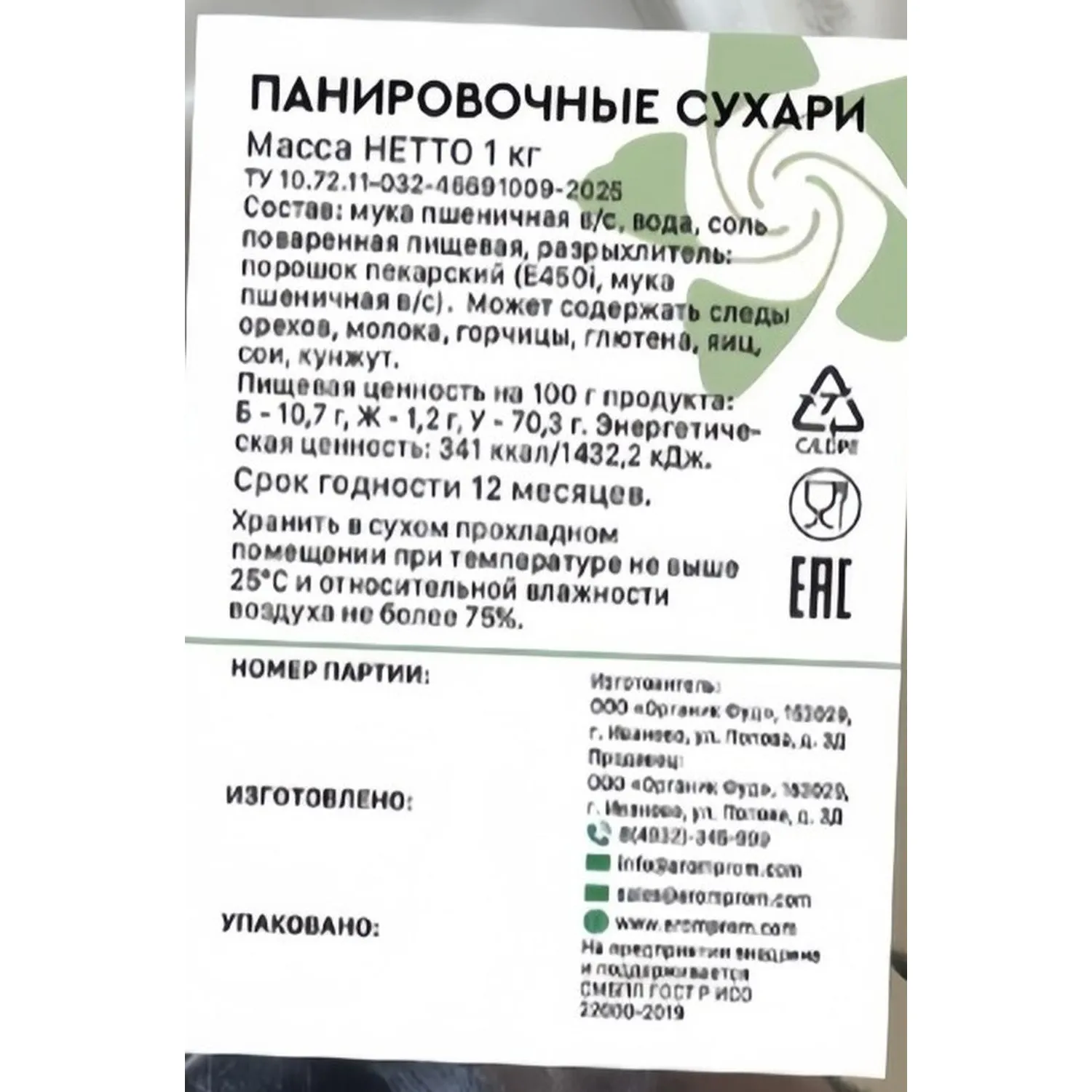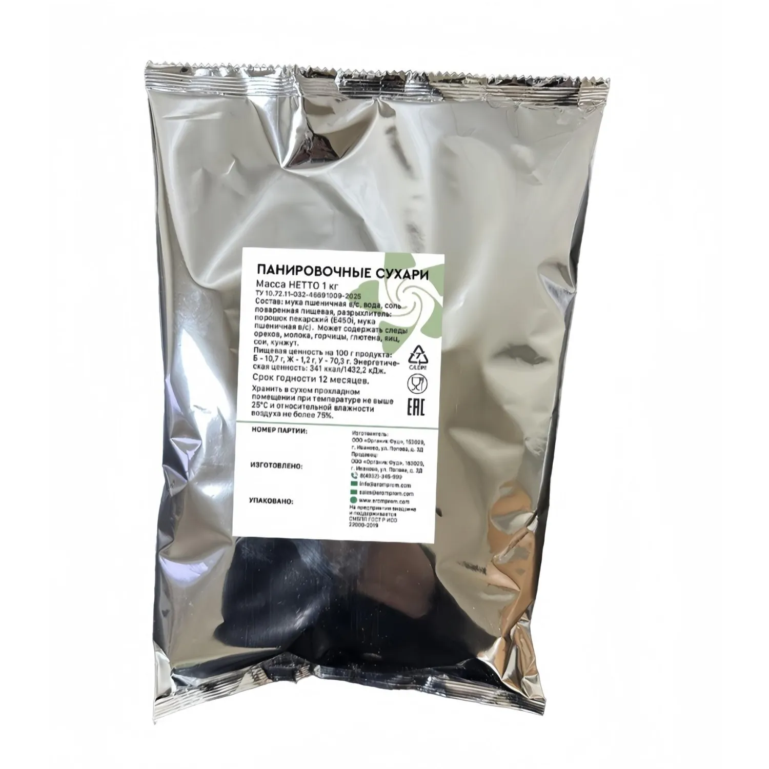 Ищете надёжную основу для сотен аппетитных, хрустящих блюд Наши панировочные сухари — ваш идеальный партнёр на кухне! Фольгированный пакет гарантирует длительную свежесть и идеальную консистенцию, а крупный объем — экономию времени и средств. Идеально подходит для: