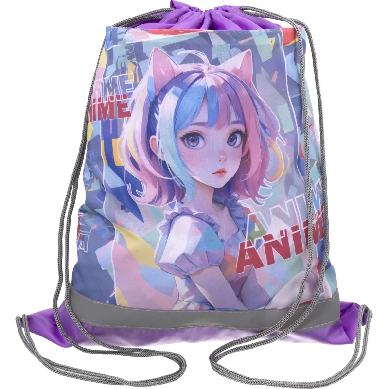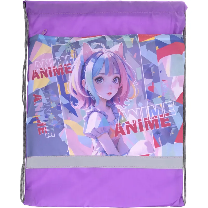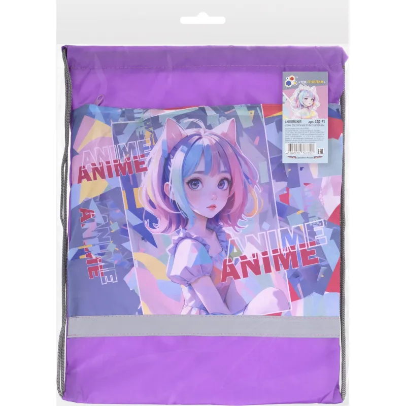 Мешок для сменной обуви Анимемания 420×340 мм фиолетовый с карманом и светоотражающими элементами
