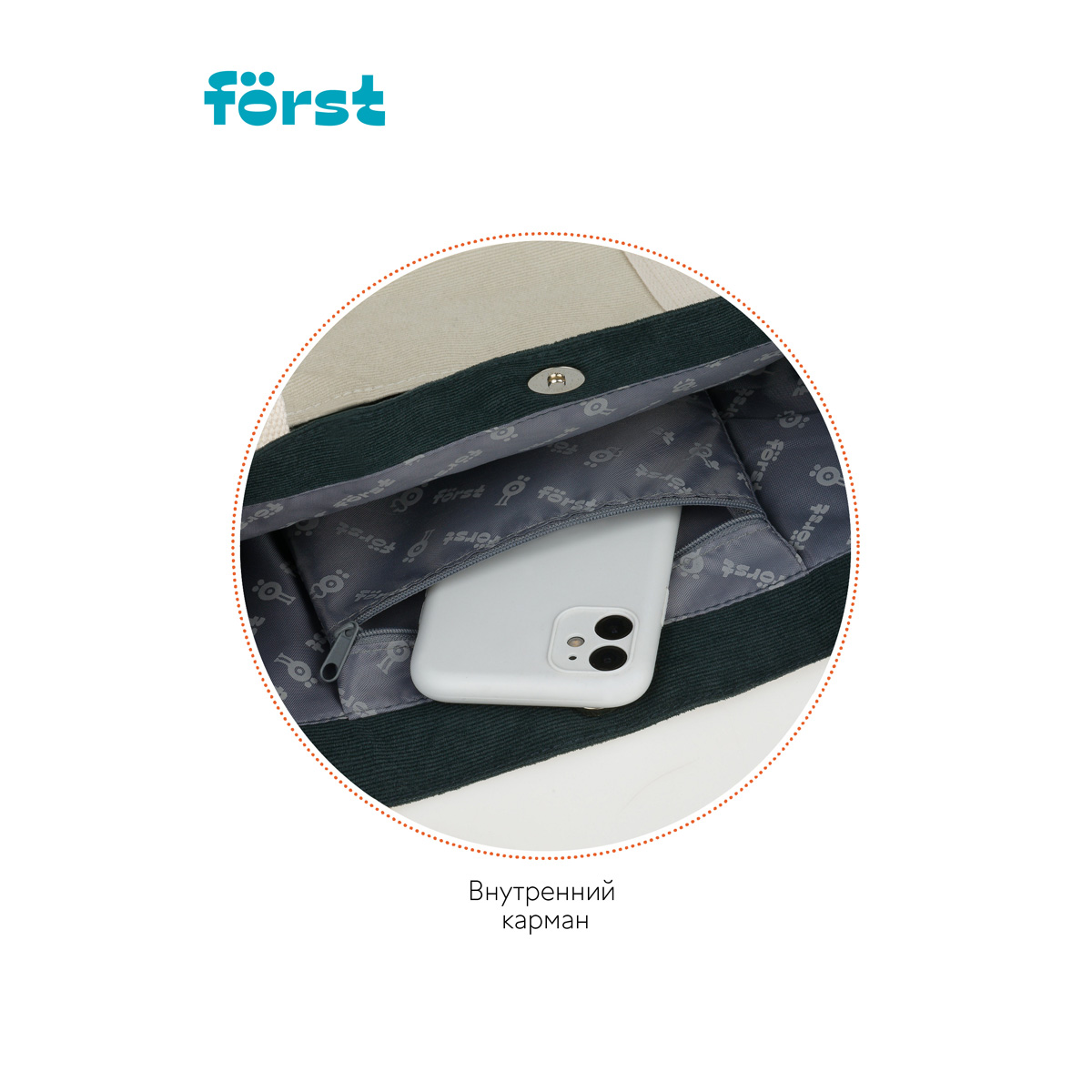 Сумка-шоппер Forst "Grass" 40*35*8см, 1 отделение, 1 карман, вельветовая на кнопке