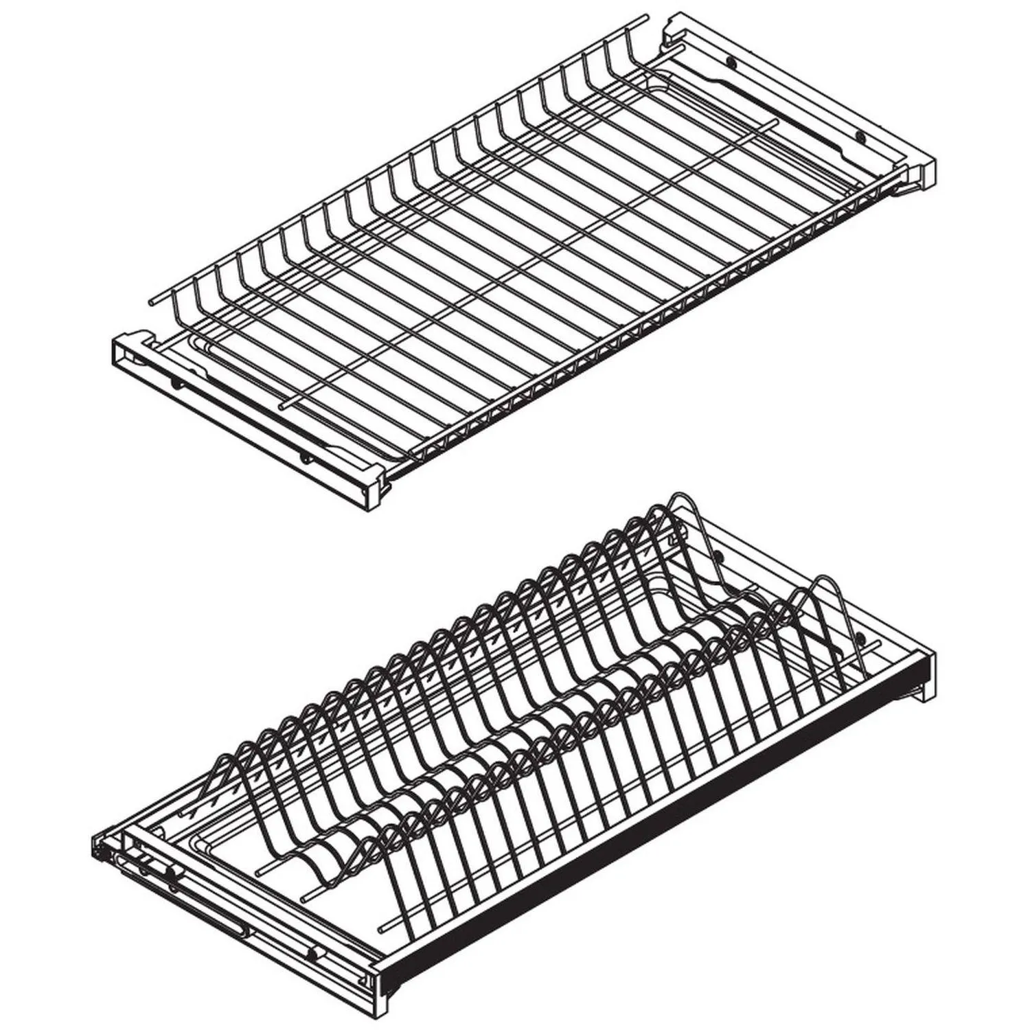 Сушка 402640 двухуровневая для посуды в модуль 600 мм предназначенная для хранения вымытых тарелок и кружек. Комплектация: верхний ярус сушки — 1 шт., нижний ярус сушки — 1 шт., поддон — 1 шт., держатель под поддон — 1 комплект.