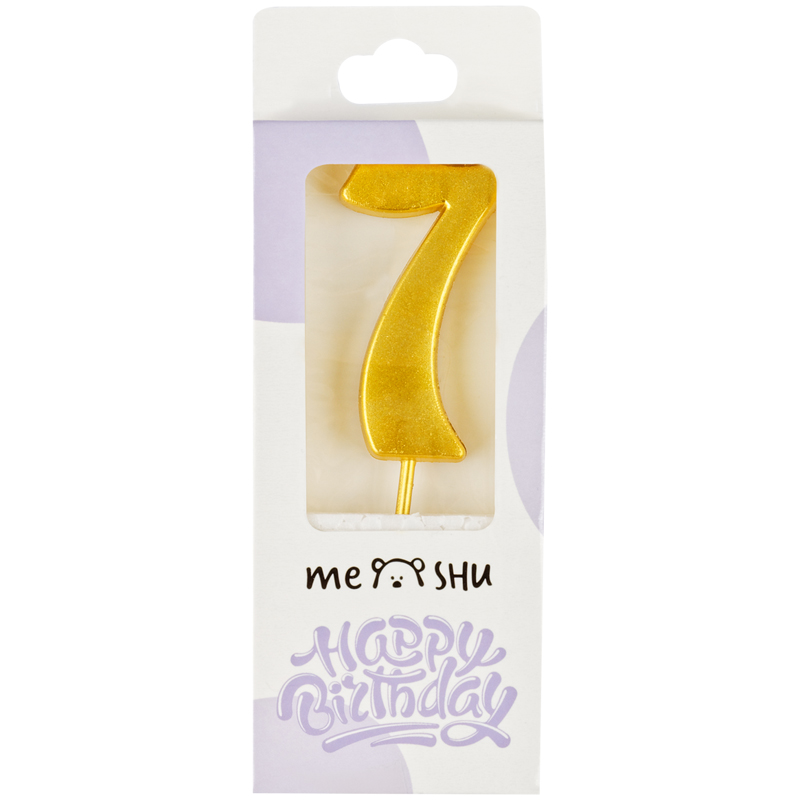 Свеча для торта с держателем MESHU "Цифра 7", 6см, золотая, блистер