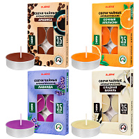 Свечи чайные ароматические в гильзе КОМПЛЕКТ 6 штук, до 3,5 часов горения, ассорти 4 аромата, LAIMA, 609977