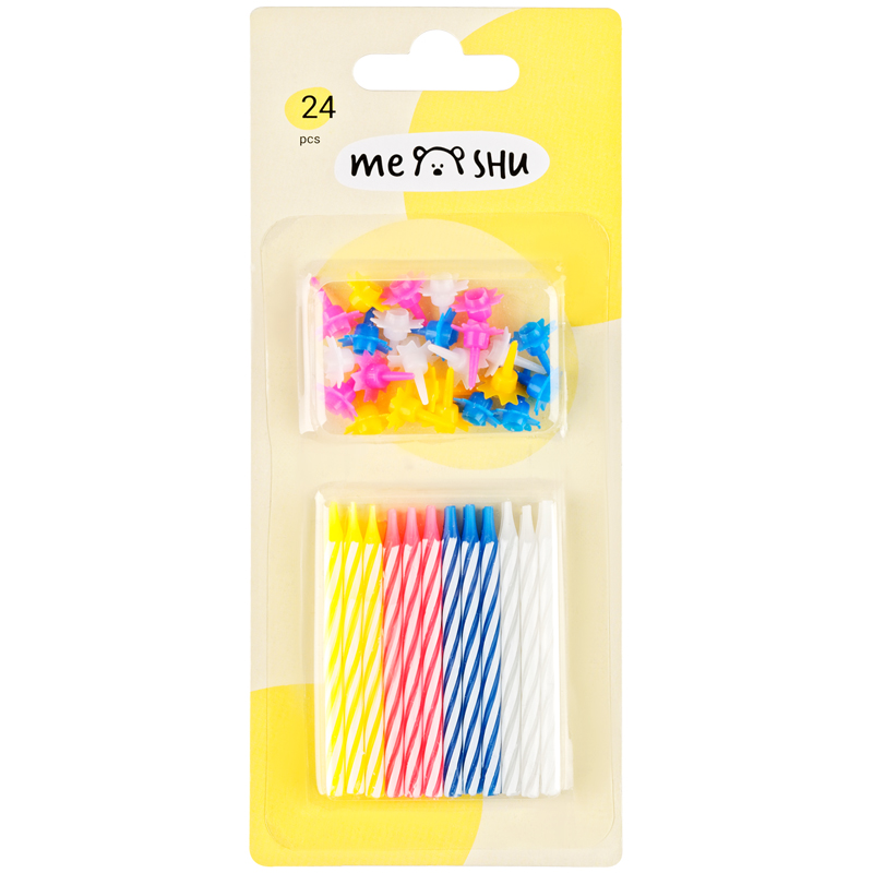 О товаре «Свечи для торта с держателями MESHU "Мини", 2-х цветные, 5,5см, 24шт., блистер»