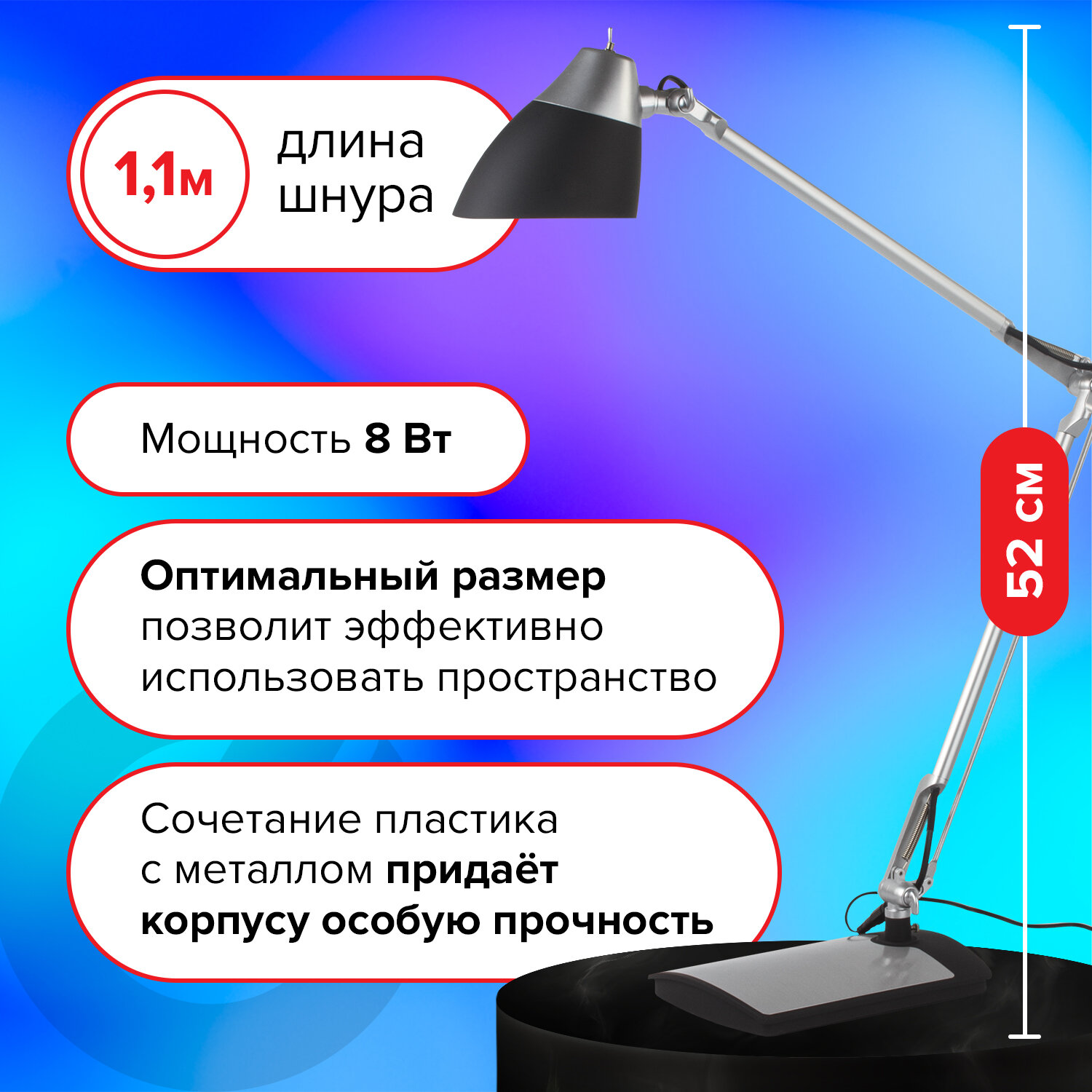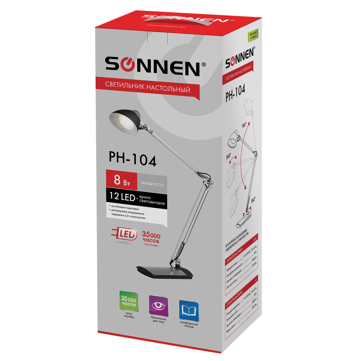 О товаре «Настольная лампа / светильник SONNEN PH-104, на подставке, LED, 8 Вт, металлический корпус, черный, 236690»