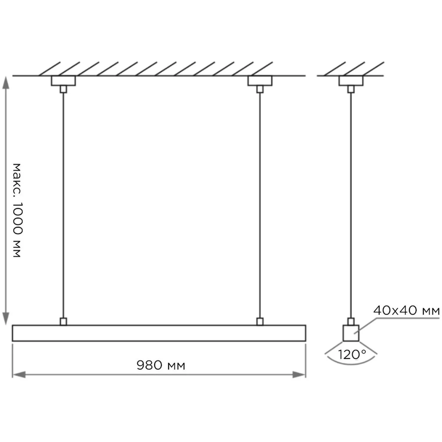 Светильник светодиодный линейный, подвесной, 24Вт, 4000К, IP40, чёрный