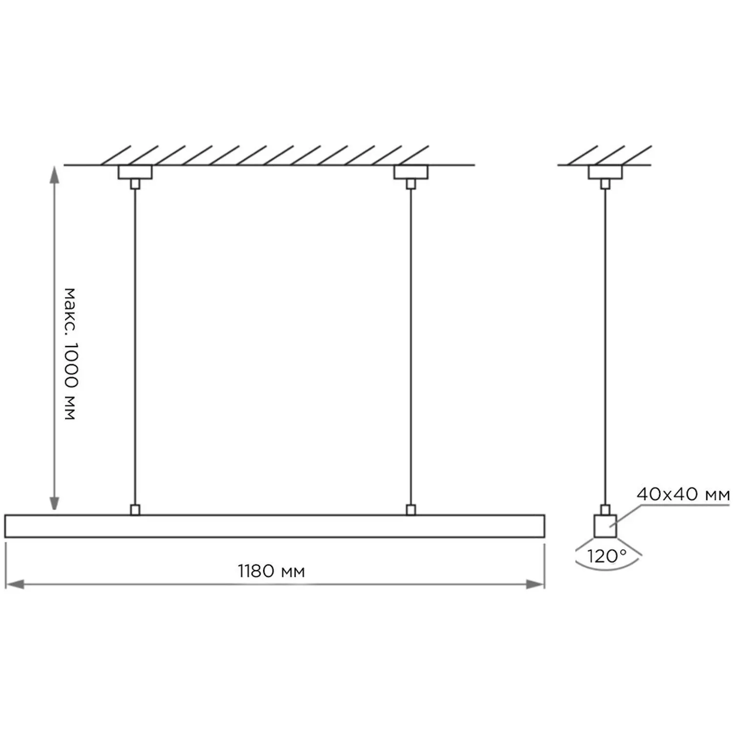 Светильник светодиодный линейный, подвесной, 40Вт, 4000К, IP40, серебро