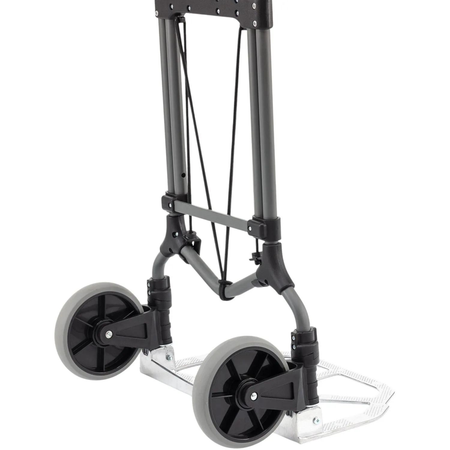 Тележка имеет складную конструкцию и телескопическую ручку с регулировкой по высоте. Максимальная высота ручки достигает 1040 мм. Габариты тележки в рабочем положении составляют 450 мм по длине, 485 мм по ширине и 1040 мм по высоте. В сложенном виде размеры тележки — 755×485×60 мм, что облегчает её хранение и транспортировку. Конструкция выполнена без бортов и дополнительно комплектуется крепёжной резинкой для фиксации груза. Вес тележки составляет 5 кг. Цвет исполнения — стальной и чёрный.