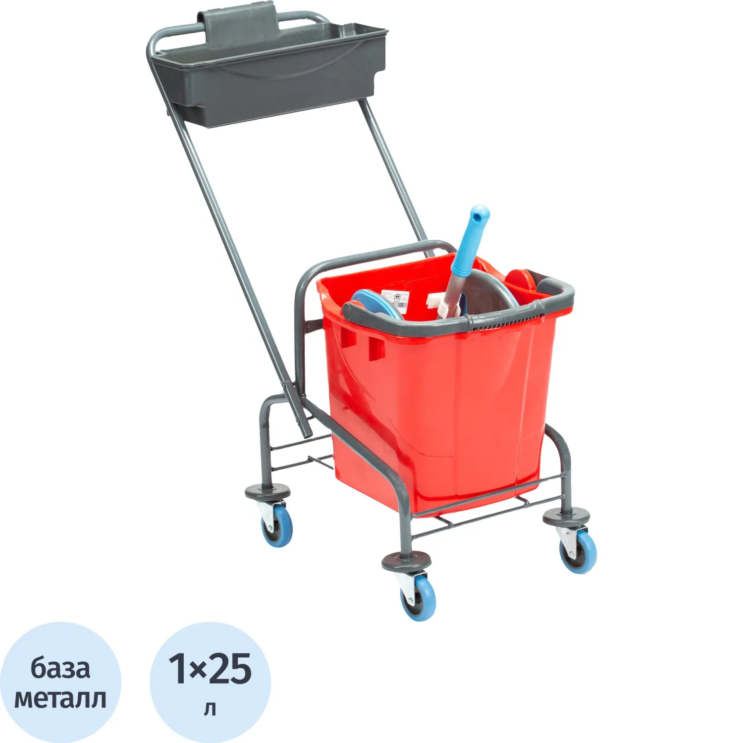 Тележка уборочная одноведерная 25л отжим, контейнер, мет.каркас ТК722