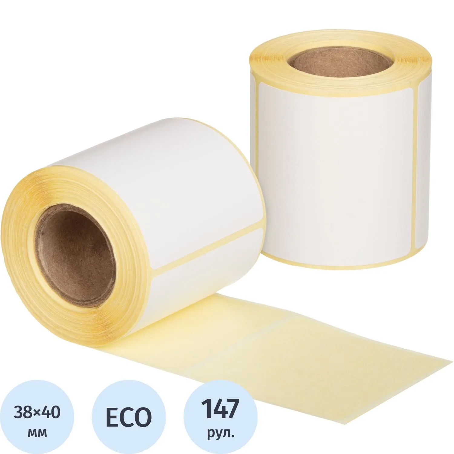 Термоэтикетки 38х40 мм ЭКО (диаметр втулки 25 мм, 147 рулонов по 250 этикеток)