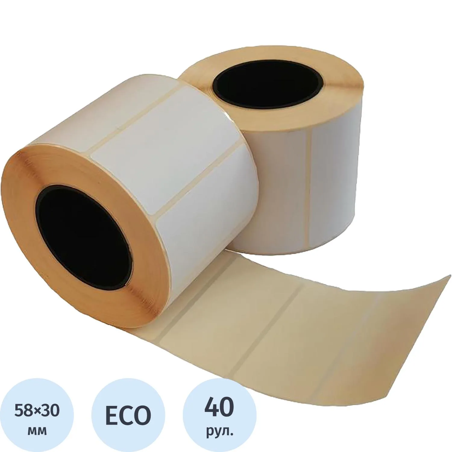 Термоэтикетки 58х30 мм ЭКО (диаметр втулки 40 мм, 40 рулонов по 900 этикеток)