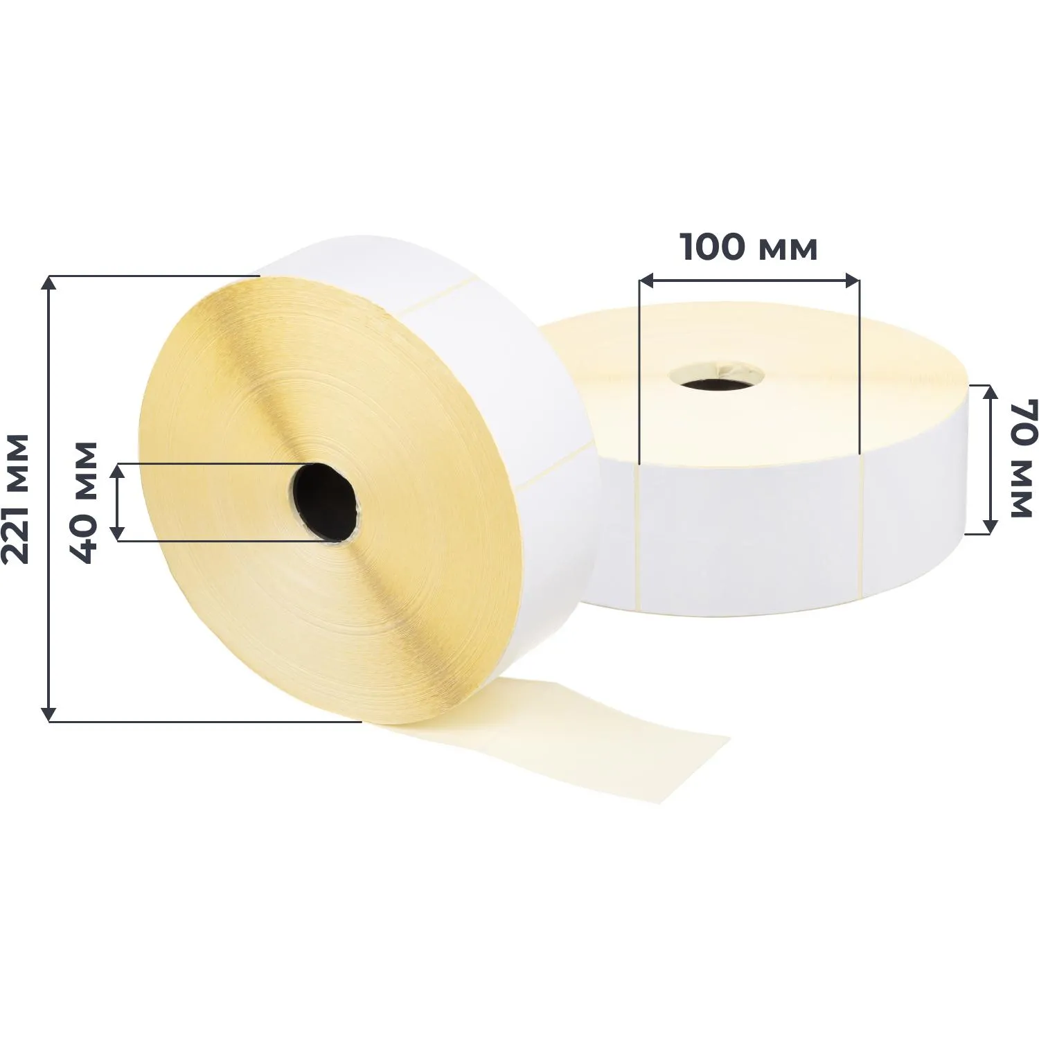 Термоэтикетки 70×100 мм ЭКО 40 мм диаметр втулки (5 рулонов по 3000 этикеток) без печати изготовлены из высококачественного материала Thermal ECO (ТермоЭко). Рулон со втулкой диаметром 40 мм содержит 3000 плюс-минус 5 этикеток. Самоклеящиеся термоэтикетки применяются для нанесения веса, штрихкодов, цен и другой информации, маркировки товаров недлительного хранения. Используются в мобильных принтерах. Потенциальные потребители — супермаркеты, производство, логистика, центры техобслуживания кассовых аппаратов, снабжающие компании, компании по поставке упаковочных материалов, предприятия, занимающиеся фасовкой продукции и т. д.