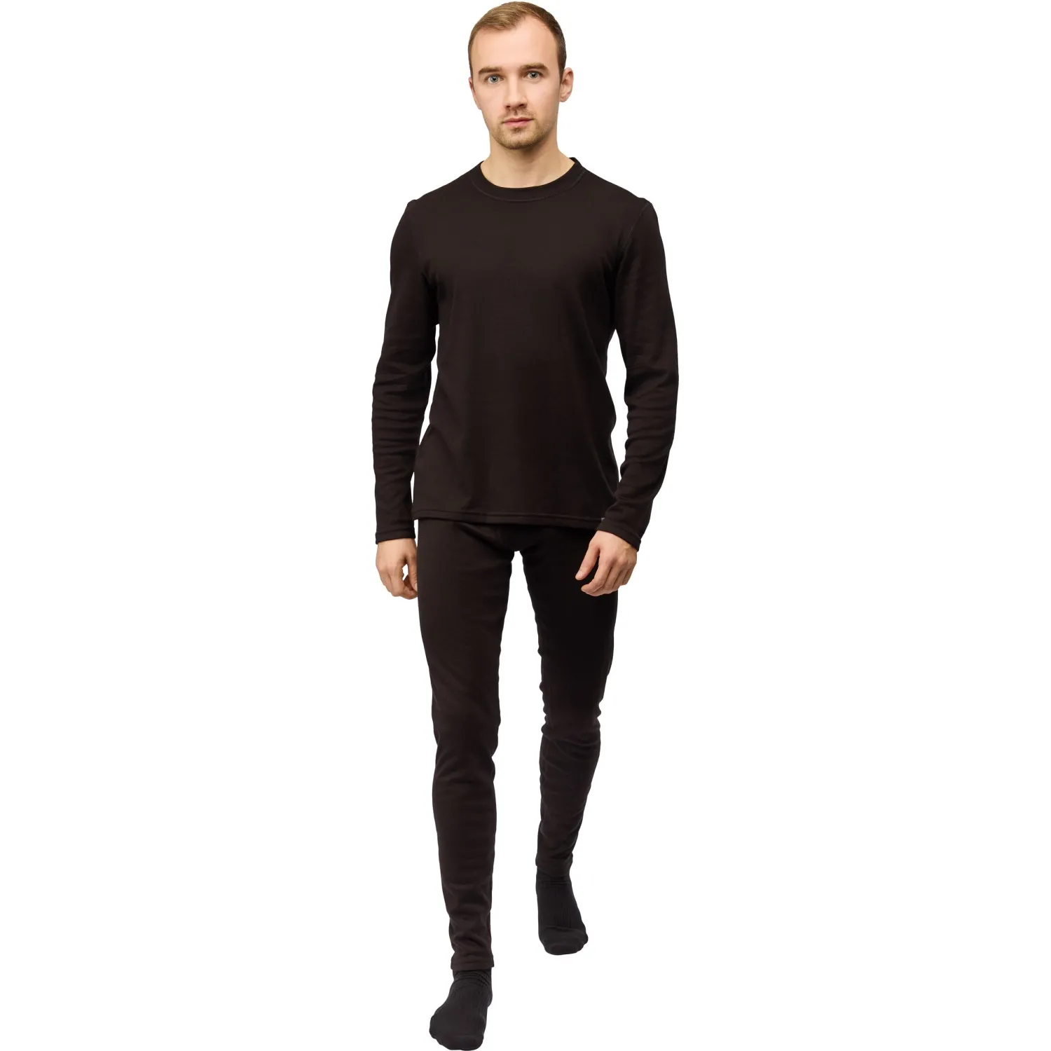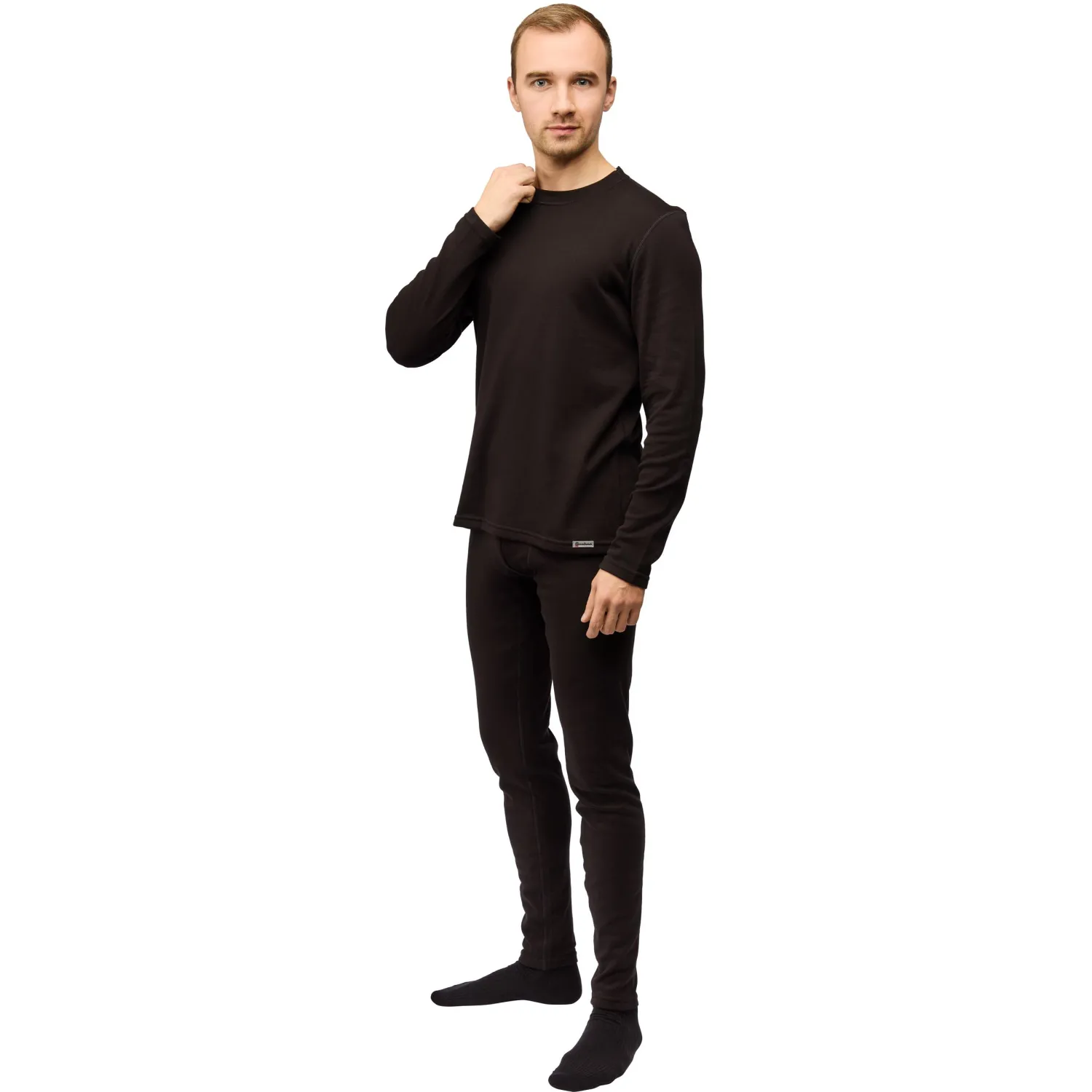 Термобелье прилегающего силуэта, удобное и практичное, сделано из лёгкого мягкого эластичного трикотажного полотна. Благодаря большому содержанию хлопка имеет высокие гигиенические свойства. Содержание полиэстера улучшает воздухопроницаемость и ускоряет процесс влаговывода. Высокая эластичность материала обеспечивает удобную посадку. Внутренняя сторона полотна с начёсом хорошо сохранят тепло. Изделие не мнется, не требует специального ухода и быстро сохнет. Плоские швы повышают комфортность и прочность.