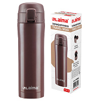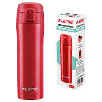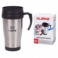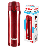 Автокружка 400 мл, термостакан с ручкой, винтовая крышка-клапан, пластик/сталь, красная, LAIMA, 605127