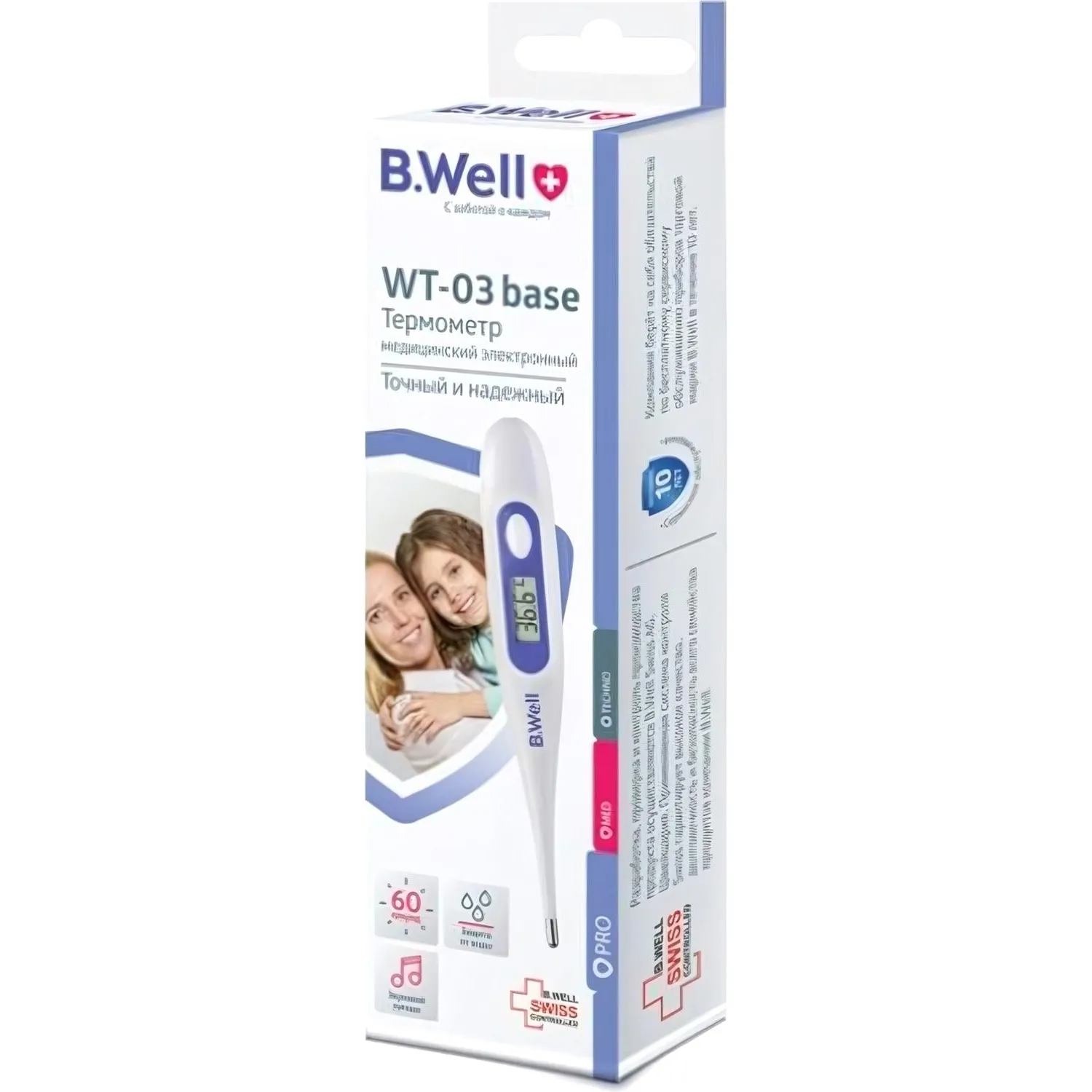 Термометр электронный B.Well WT-03 предназначен для измерения температуры тела различными способами: подмышечным, ректальным и оральным. Он не содержит ртути и стеклянных элементов, что делает использование безопасным даже при повреждении корпуса. В отличие от традиционного ртутного градусника, прибор оснащён жидкокристаллическим дисплеем и функцией памяти, позволяющей сохранить последнее измерение.