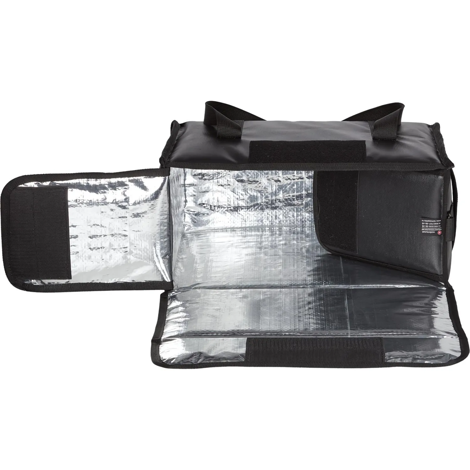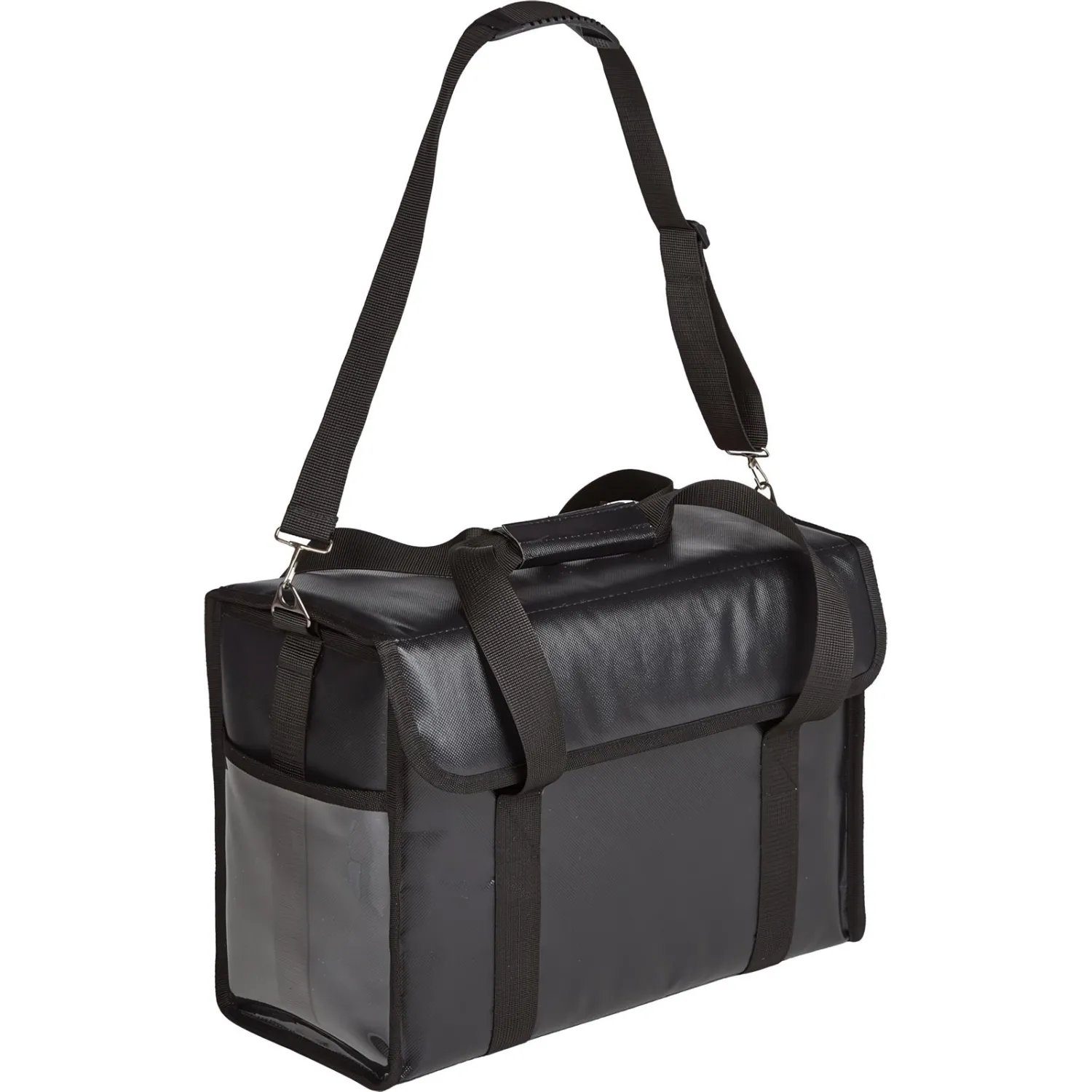 Термосумка для обедов пригодится на пикнике и станет незаменимым помощником в профессиональной доставке готовых блюд. Этот аксессуар выполнен в стильном черном цвете из винила, отличающегося прочностью, водонепроницаемостью и износостойкостью. Внутри термосумка оснащена теплоизоляционным слоем, а снаружи — плечевым ремнем и ручками для комфортного переноса обедов на дальние расстояния. Сумка герметично закрывается с помощью застежки-липучки. Снаружи также имеется карман с прозрачным пластиковым окошком, в котором можно размещать необходимые для мелочи, а также распечатанные документы на заказ, флаеры и прочую рекламную полиграфию. По запросу возможно нанесение на сумку логотипа компании и дополнительная комплектация внутренней перегородкой. Размер термосумки: 45×20×30 см. Объем термосумки: 27 литров. Страна происхождения: Россия.