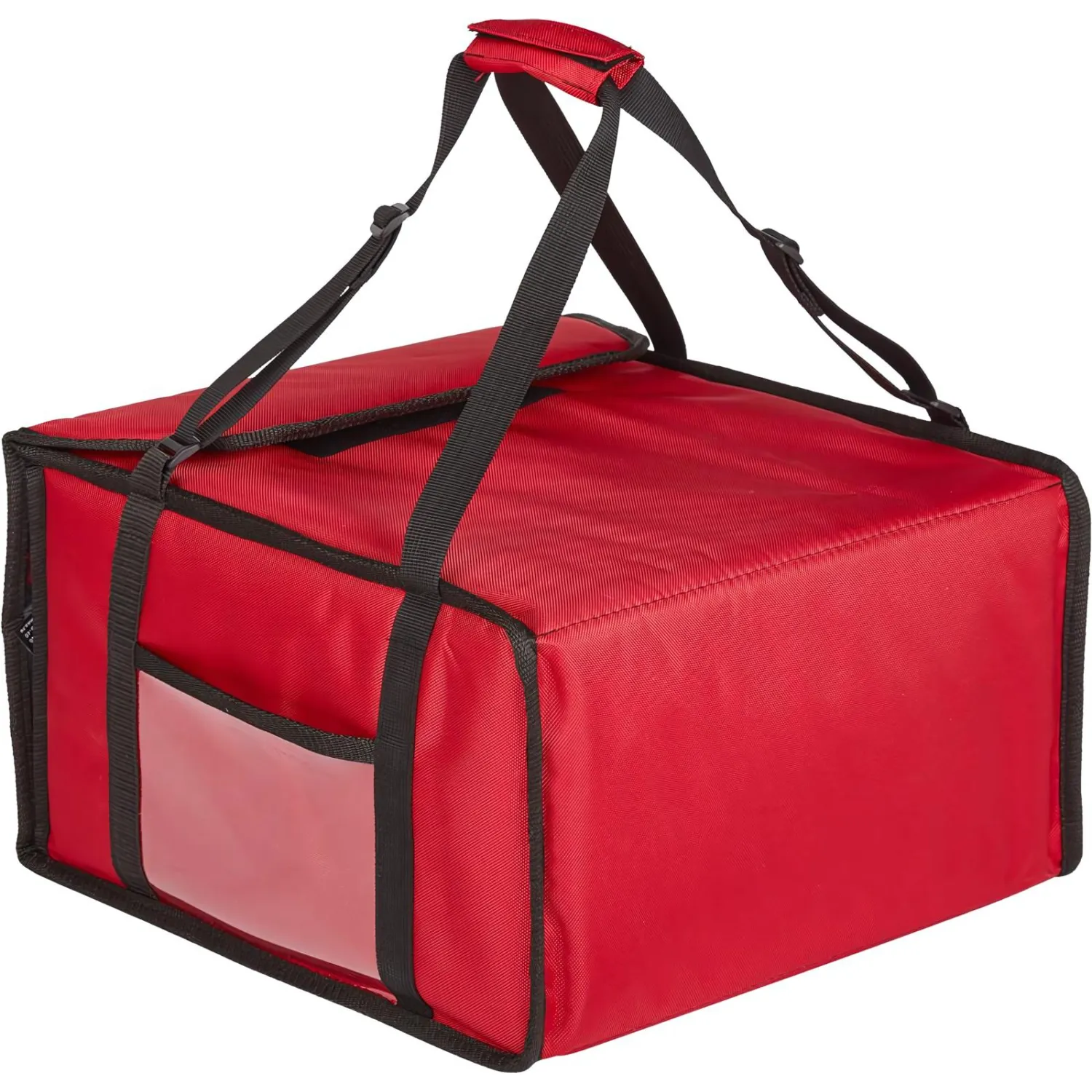 Термосумка для пиццы станет незаменимым помощником в профессиональной доставке. Этот аксессуар вмещает в себя 4-5 пицц и выполнен в стильном красном цвете из ткани оксфорд, отличающейся плотным плетением, водонепроницаемостью, термоустойчивостью и износостойкостью. Внутри термосумка оснащена теплоизоляционным слоем (фольга и утеплитель), а снаружи — ручками для комфортного переноса пиццы на дальние расстояния. Сумка герметично закрывается с помощью застежки-липучки. Снаружи также имеется карман с прозрачным пластиковым окошком, в котором можно размещать распечатанные документы на заказ, флаеры и прочую рекламную полиграфию компании-доставщика. По запросу возможно нанесение на сумку логотипа компании и дополнительная комплектация внутренней перегородкой.