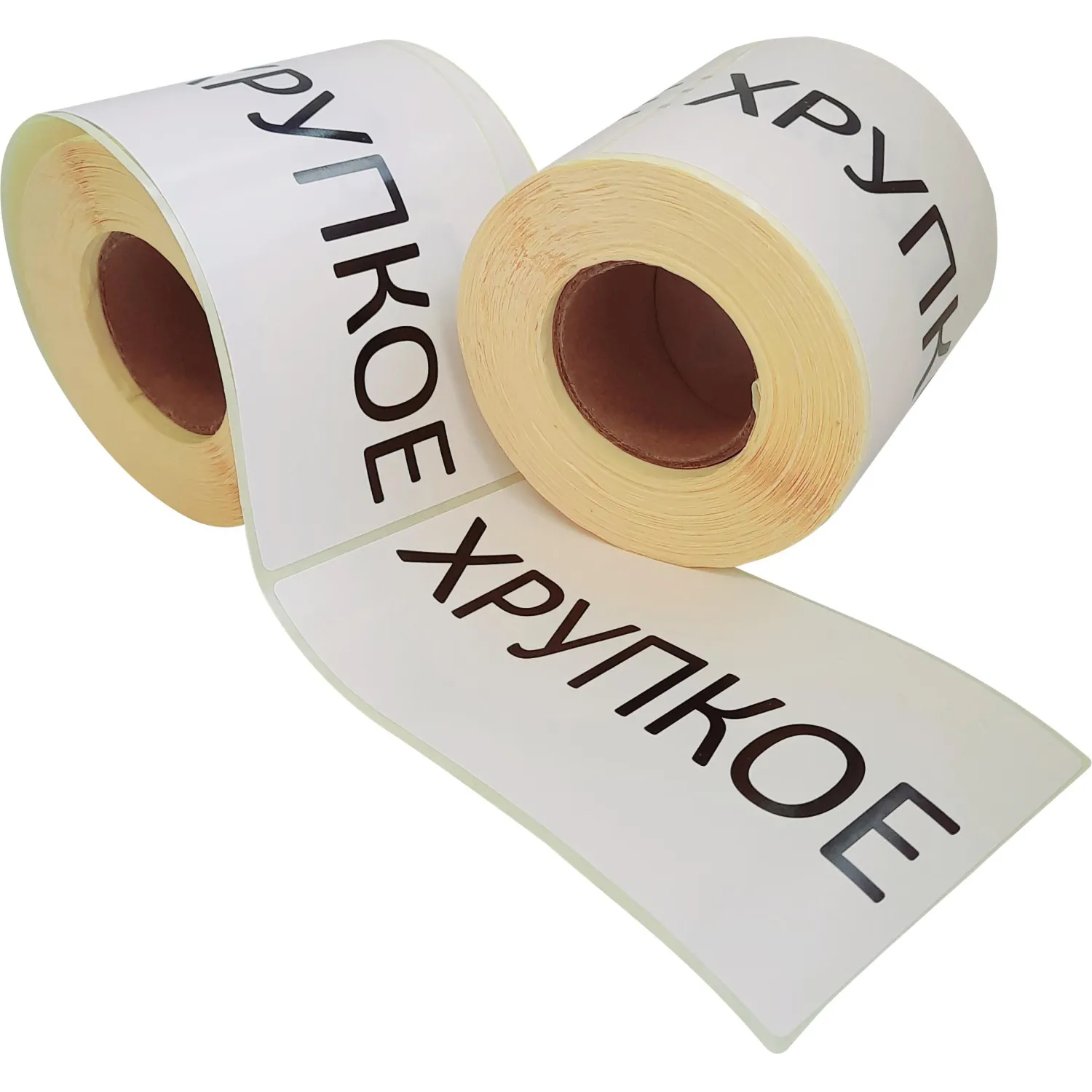 Термотрансферные этикетки с печатью 'ХРУПКОЕ' отлично подойдут для маркировки хрупких грузов, стекла, пластика
