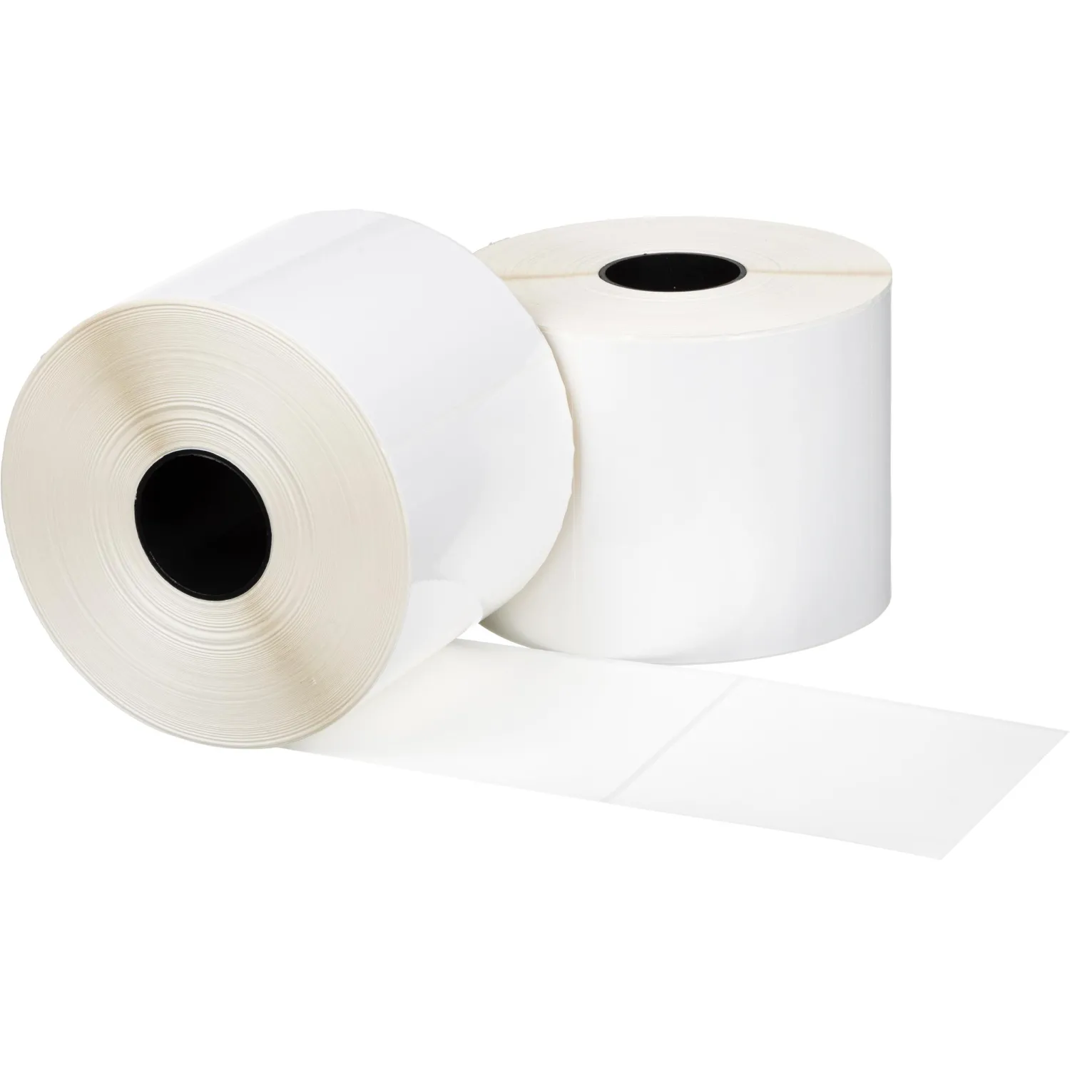 Термотрансферные этикетки размером 100×100 мм без печати белого цвета изготовлены из материала полипропилен (ПП) ведущих производителей. Рулон с втулкой диаметром 40 мм содержит 1000 плюс-минус 5 этикеток. Самоклеящиеся этикетки применяются для нанесения веса, штрихкодов, цен и другой информации, маркировки товаров недлительного хранения. Потенциальные потребители — супермаркеты, производство, центры техобслуживания кассовых аппаратов, снабжающие компании, компании по поставке упаковочных материалов, предприятия, занимающиеся фасовкой продукции и т. д.