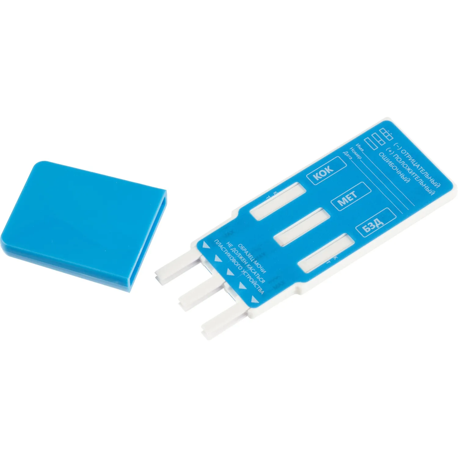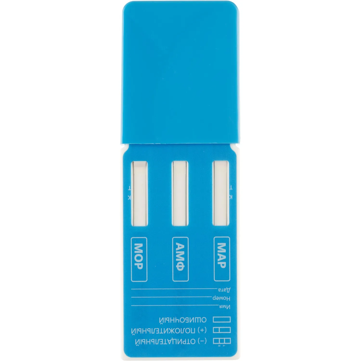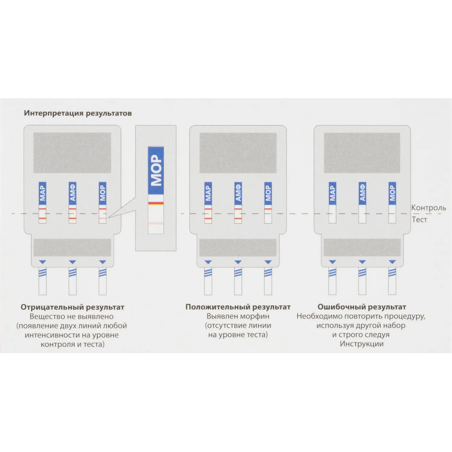 Набор тест-полосок для одновременного выявления амфетамина, марихуаны, морфина/героина, кокаина, метамфетамина и бензодиазепина. Анализируемый образец по моче. Время применения — 5 минут.
