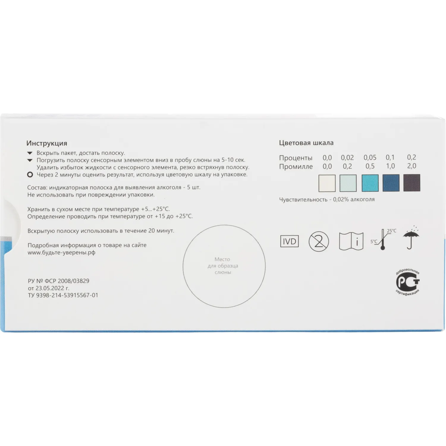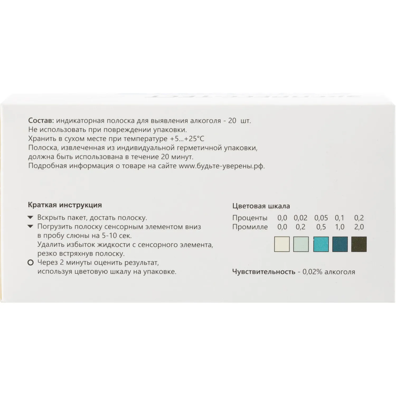 О товаре «Тест на алкоголь Будьте Уверены (20 штук в упаковке)»