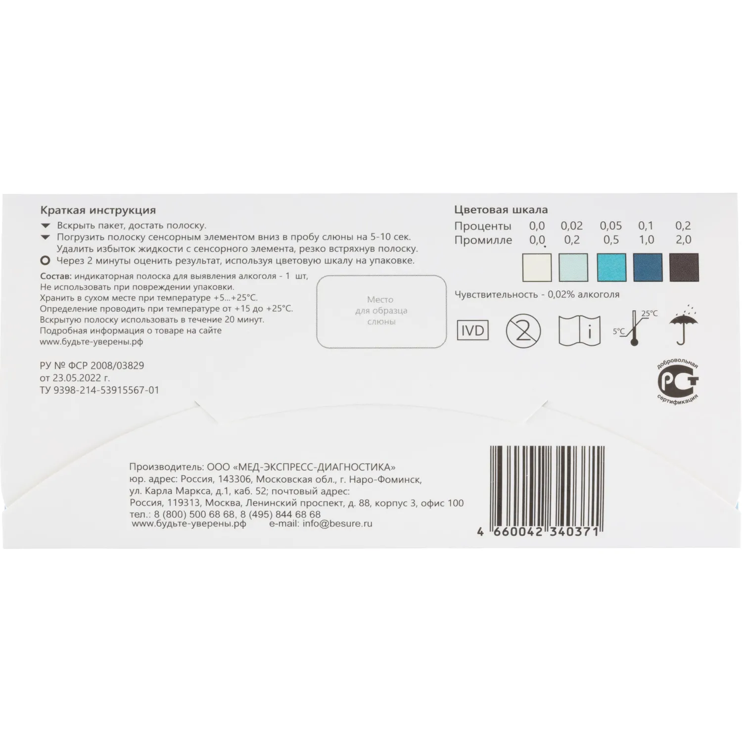 О товаре «Тест на алкоголь Будьте Уверены (5 штук в упаковке)»