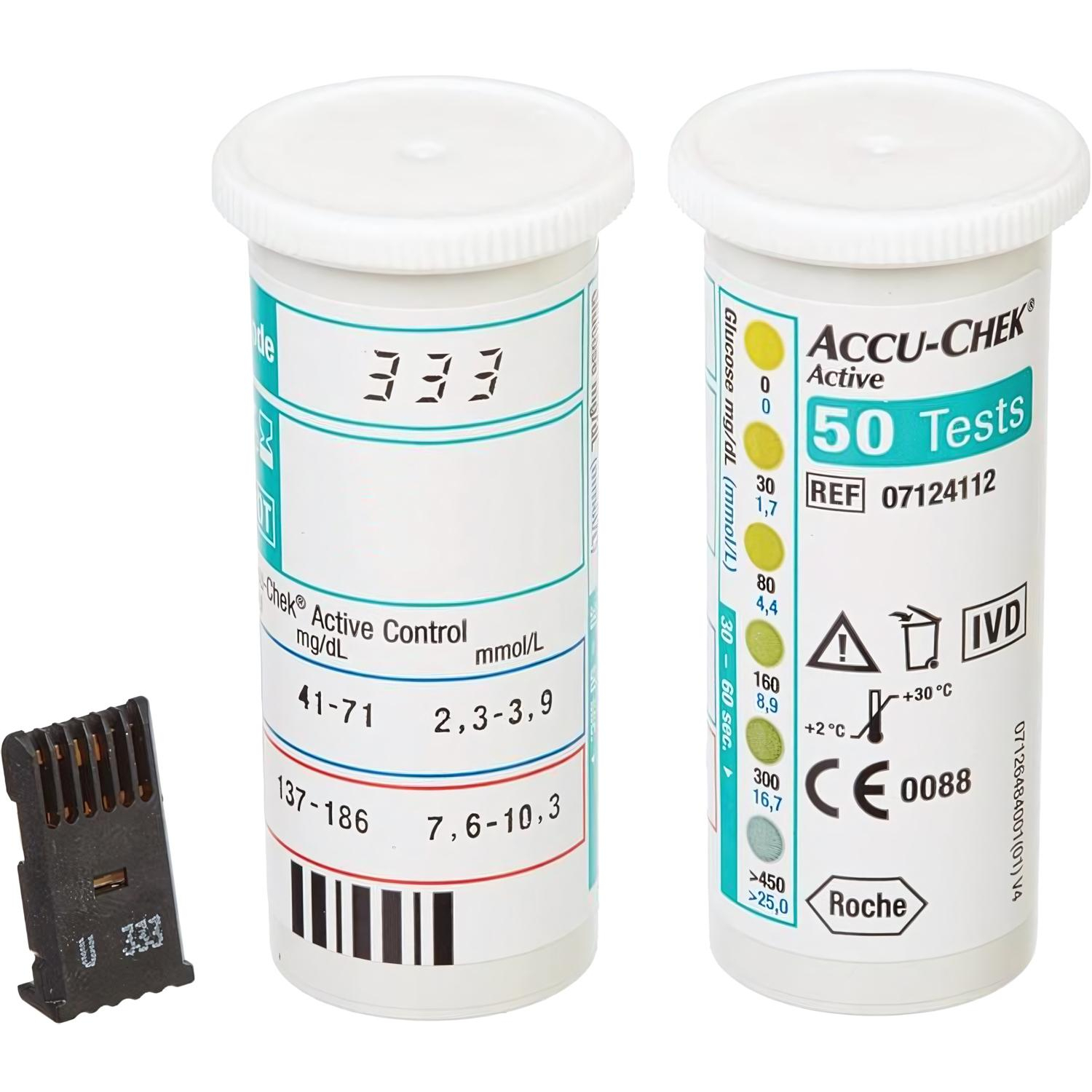 Тест-полоски используются с глюкометрами Accu-Chek Activ. Тест-полоски этой серии предназначены для количественного определения глюкозы, обработанной гепарином лития или гепарином аммония, или ЭДТА, а также — если кровь наносится на тест-полоску вне прибора — в артериальной крови, а также крови новорожденных (в неонатологии). В комплект входит: Два металлический тубуса по 50 тест-полосок; Кодирующий чип; Инструкция по применению тест-полоск. После вскрытия тубуса, тест-полоски можно использовать до окончания срока годности, указанного на упаковке.