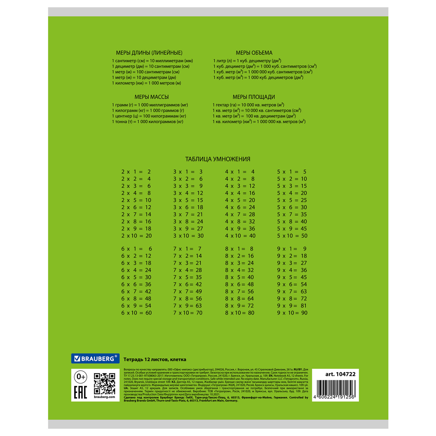 О товаре «Тетрадь 12 л. BRAUBERG КЛАССИКА, клетка, обложка картон, ЗЕЛЕНАЯ, 104722»