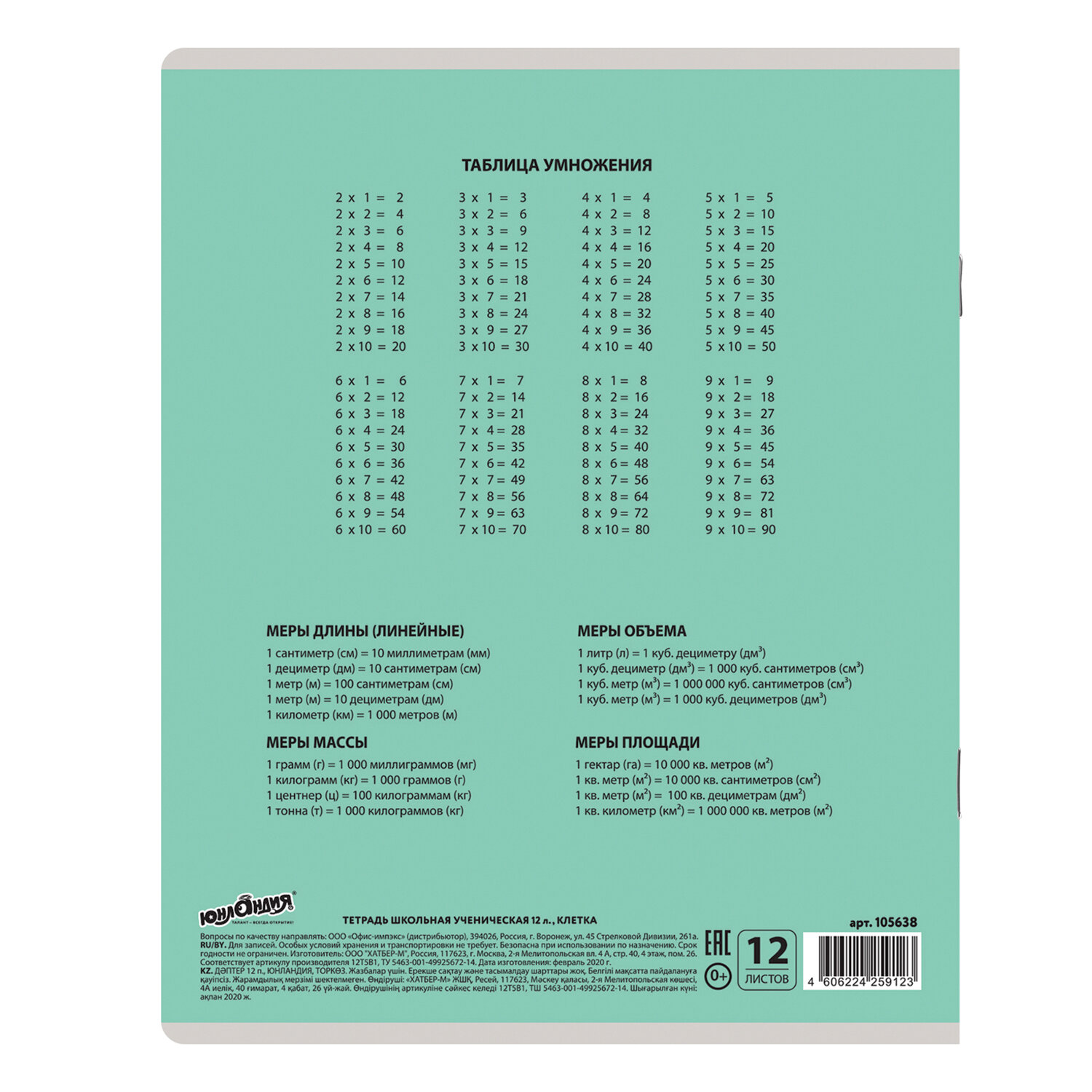 О товаре «Тетрадь 12 л. ЮНЛАНДИЯ КЛАССИЧЕСКАЯ, клетка, обложка картон, ЗЕЛЕНАЯ, 105638»