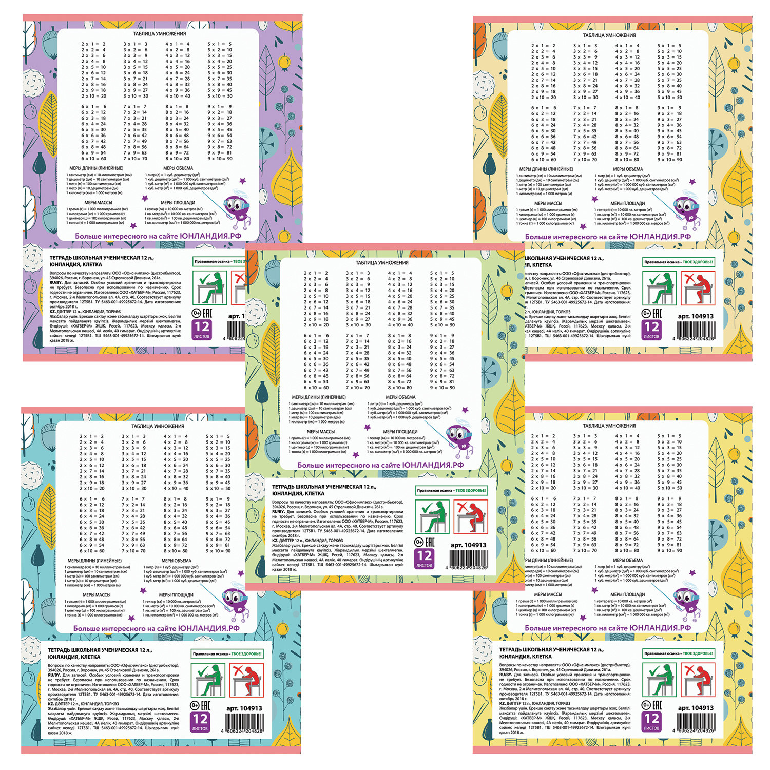 Внутренний блок плотностью 65 г/м2 из офсетной бумаги содержит 12 листов. Линовка - клетка с полями. Обложка изготовлена из импортного мелованного картона. Скрепка надежно скрепляет листы между собой.