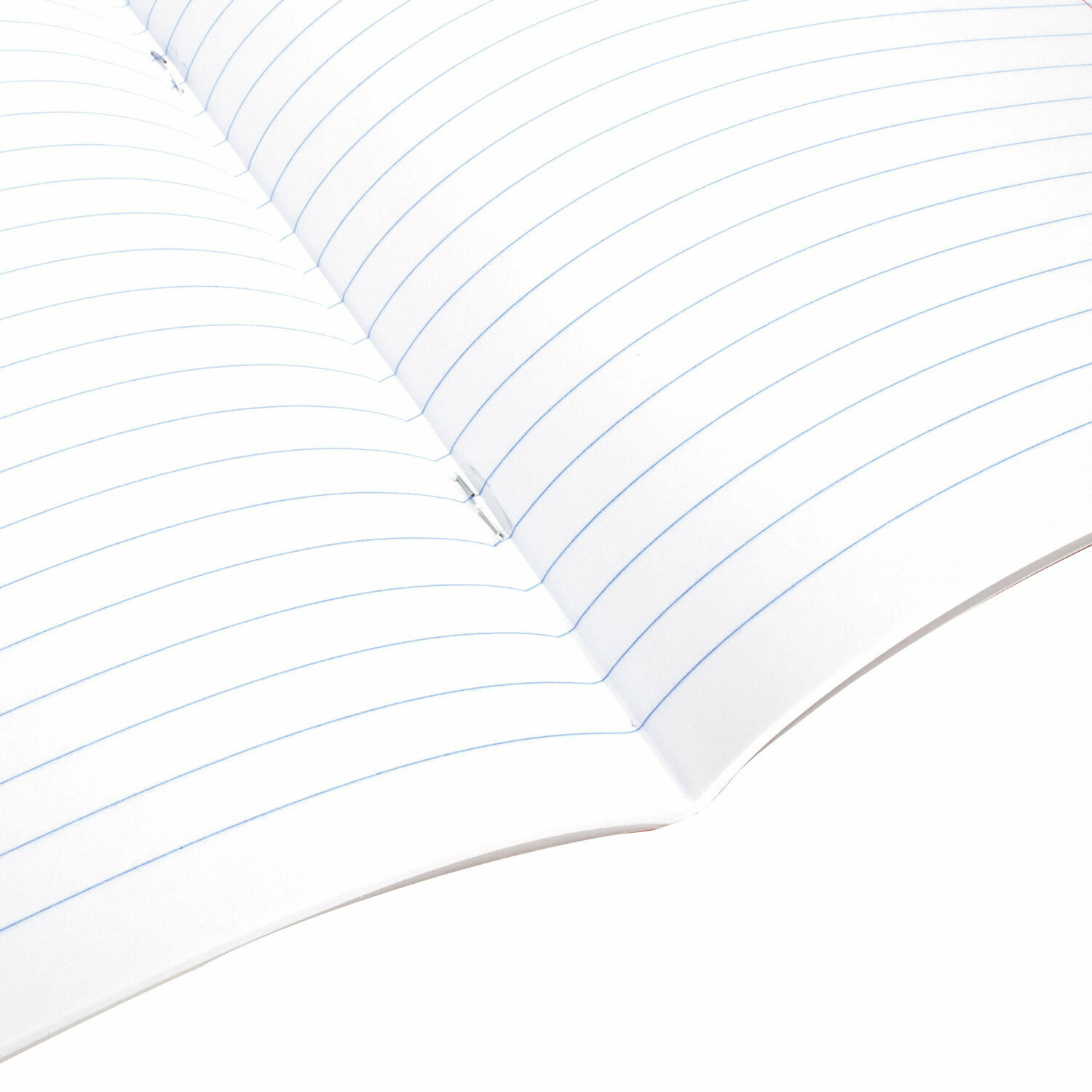 Внутренний блок плотностью 65 г/м2 из офсетной бумаги содержит 12 листов. Белизна - 100%. Линовка - линия с полями. Обложка изготовлена из импортного мелованного картона. Скрепка надежно скрепляет листы между собой.