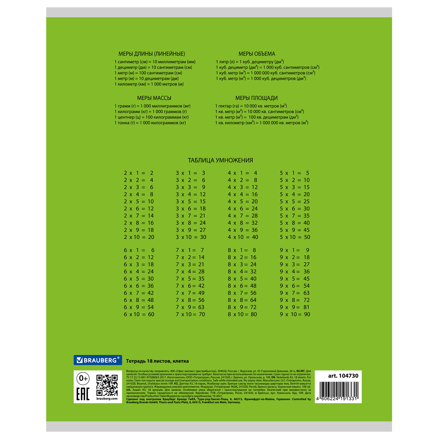 О товаре «Тетрадь 18 л. BRAUBERG КЛАССИКА, клетка, обложка картон, ЗЕЛЕНАЯ, 104730»