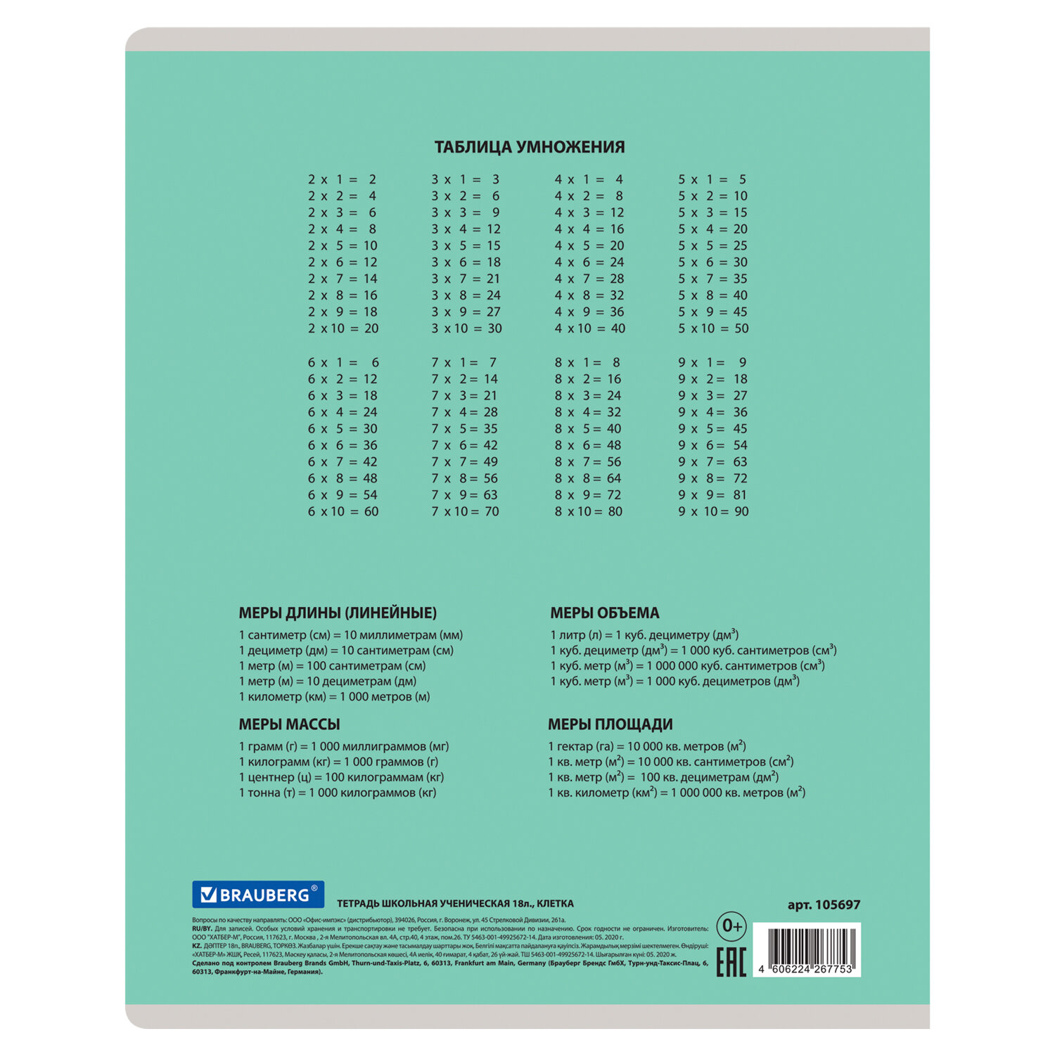 О товаре «Тетрадь 18 л. BRAUBERG "КЛАССИКА NEW" клетка, обложка картон, ЗЕЛЕНАЯ, 105697»
